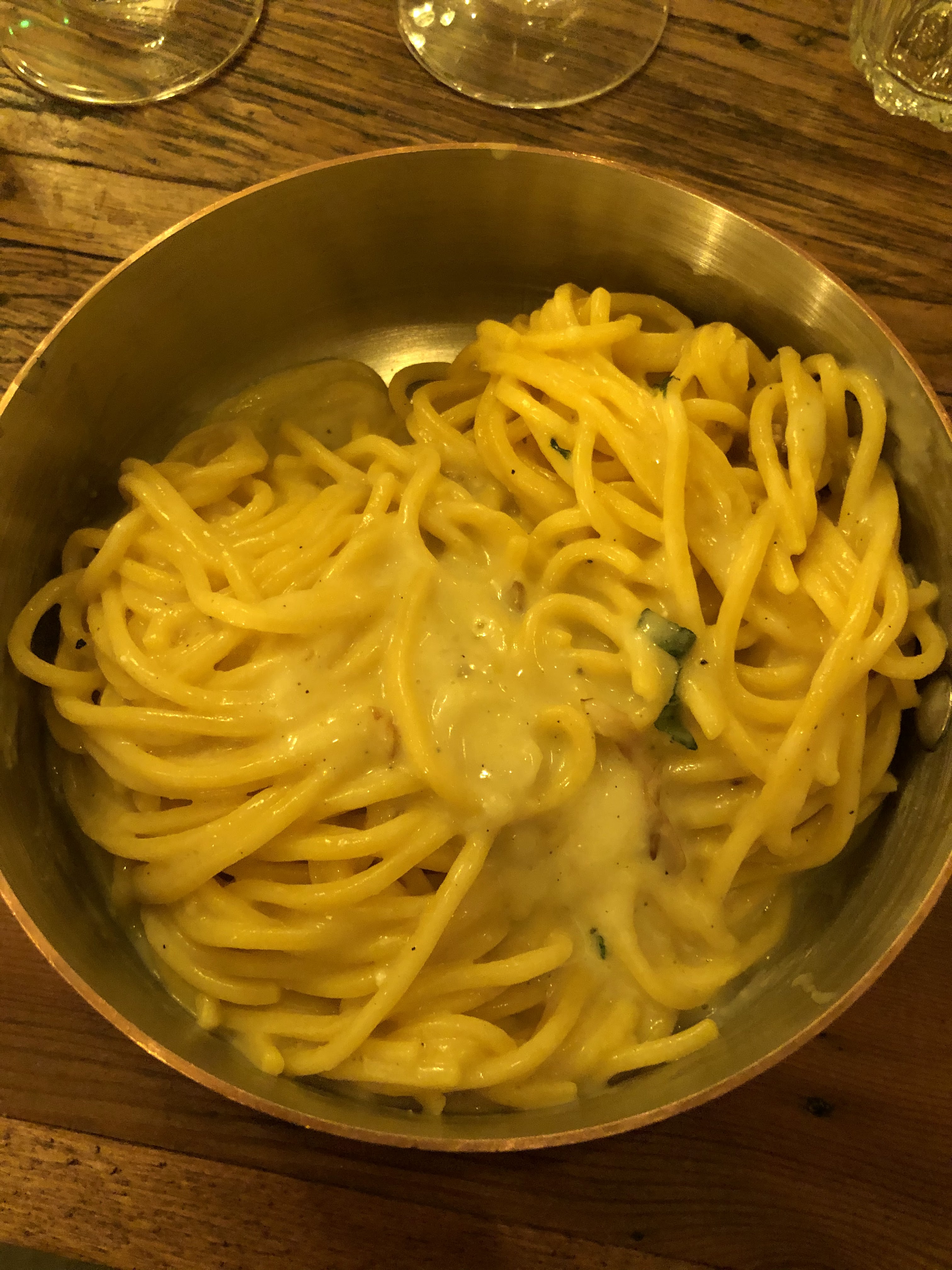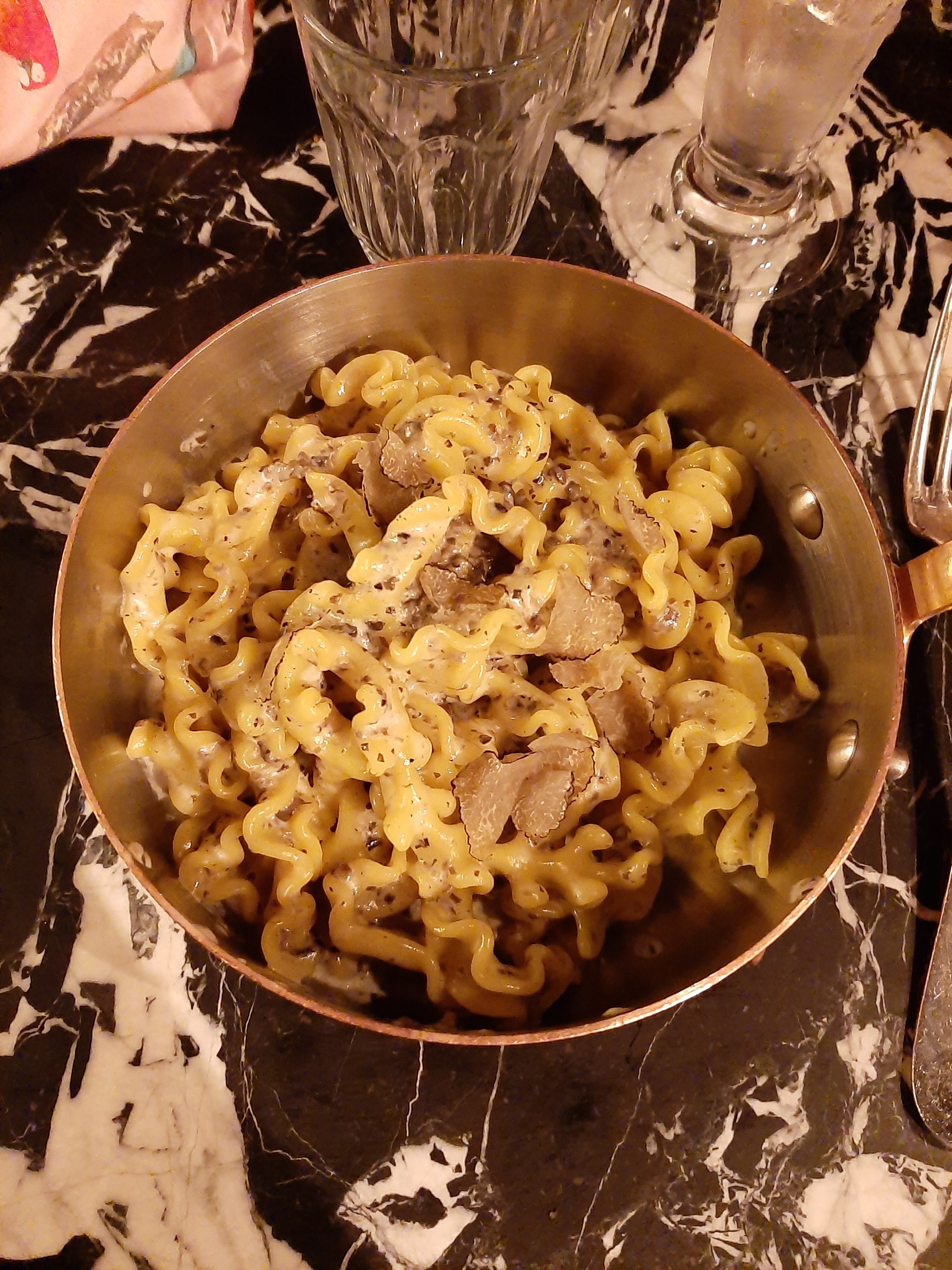 décor très jolie ! il faut réserver à l’avance, il y a beaucoup de monde. pâtes aux truffes très bonnes mais froides, petite quantité pour le prix payé. de plus, la salle en bas dans lequel nous étions étaient ventilés à l’air froid, tout le monde portait encore son manteau, on se caillait