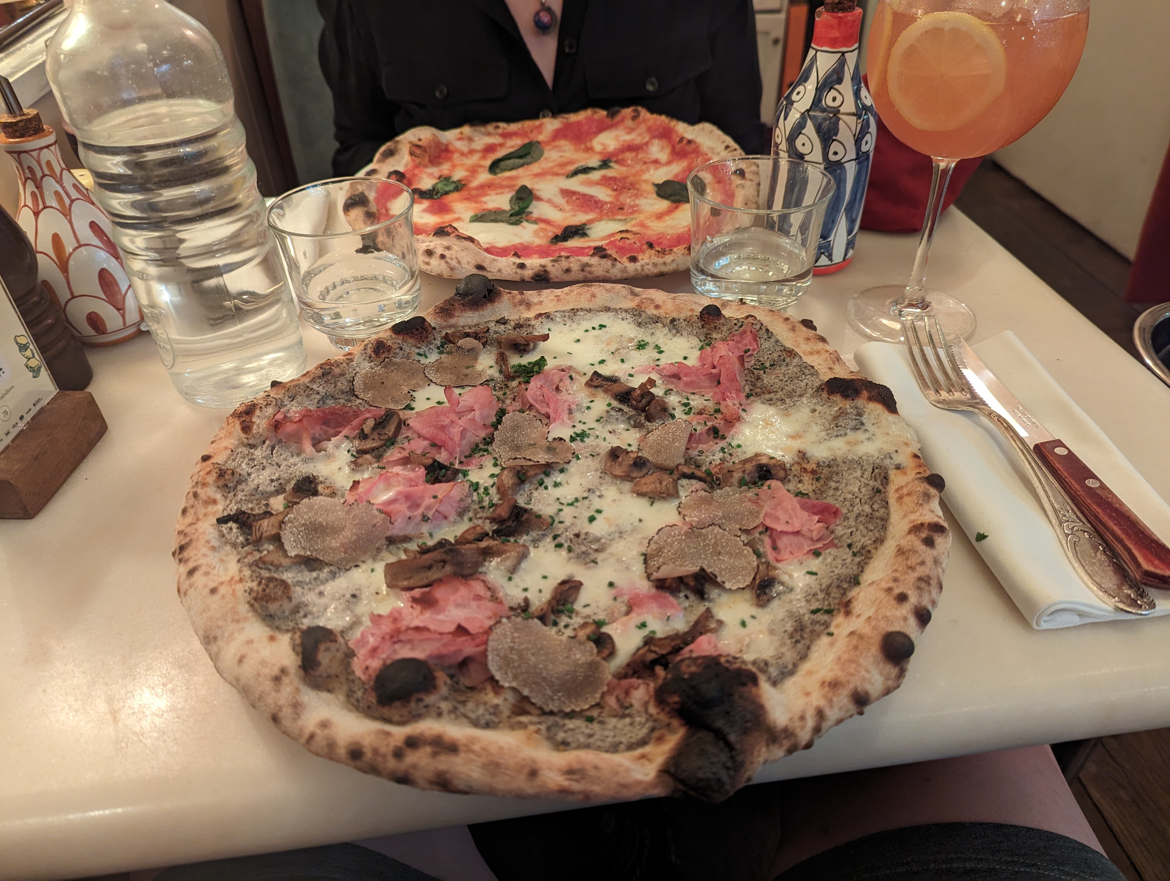Première fois dans ce lieu atypique ! Prise de réservation facile, une bon accueil également. Le lieu est adorablement décoré,immersivement italien. Nous avons été servis très rapidement. Les pizzas sont énormes, elles dépassent la taille de l'assiette ! Pour ma part j'étais un peu deçus par le goût de ma pizza, elle etait bonne certes mais cest pas la meilleure que j'ai pu gouter. Au plaisir d'en tester une autre. Celle à la truffe était vraiment bonne elle. Je vous invite à vous faire votre avis.