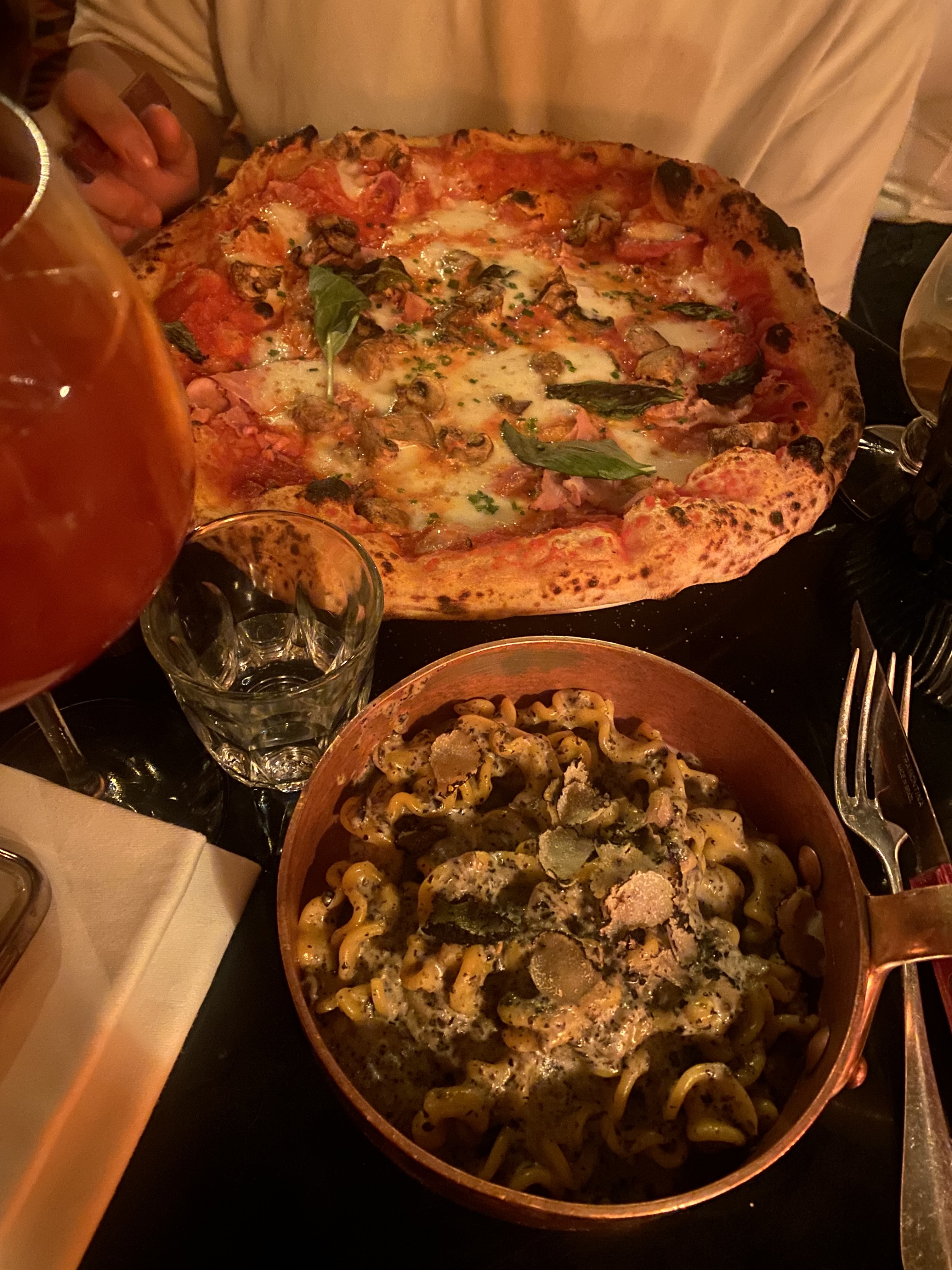 l’ambiance et la décoration étaient super jolies, les pâtes à la truffe vraiment délicieuses et le pizzas généreuses. le tiramisu est très bon pour ceux qui aiment quand il est fort en café et que la poudre de cacao est forte et amère. très bonne expérience !