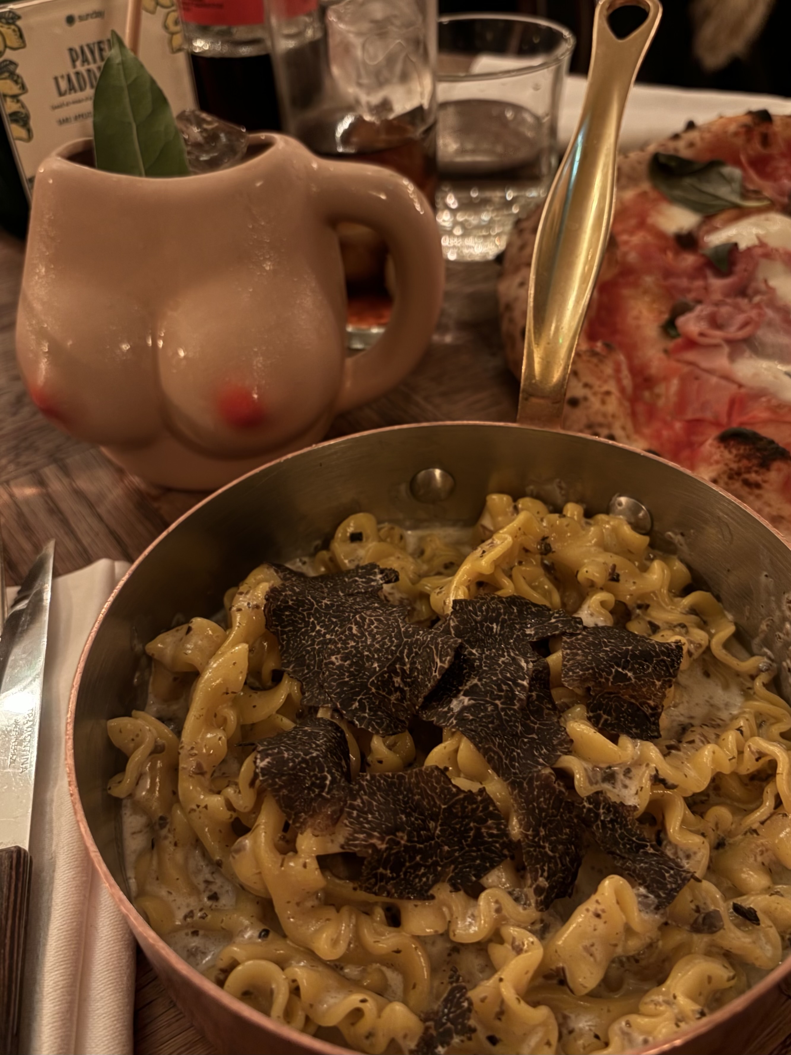 Cela vaut-il toute la publicité qu’on voit sur les réseaux sociaux? Oui pour la cuisine - un sans fautes avec une buratta hyper fraîche, la focaccia délicieuse, les pâtes à la truffe. Bien sûr c’est une machine bien huilée et efficace avec une salle bruyante et on mange très rapidement.