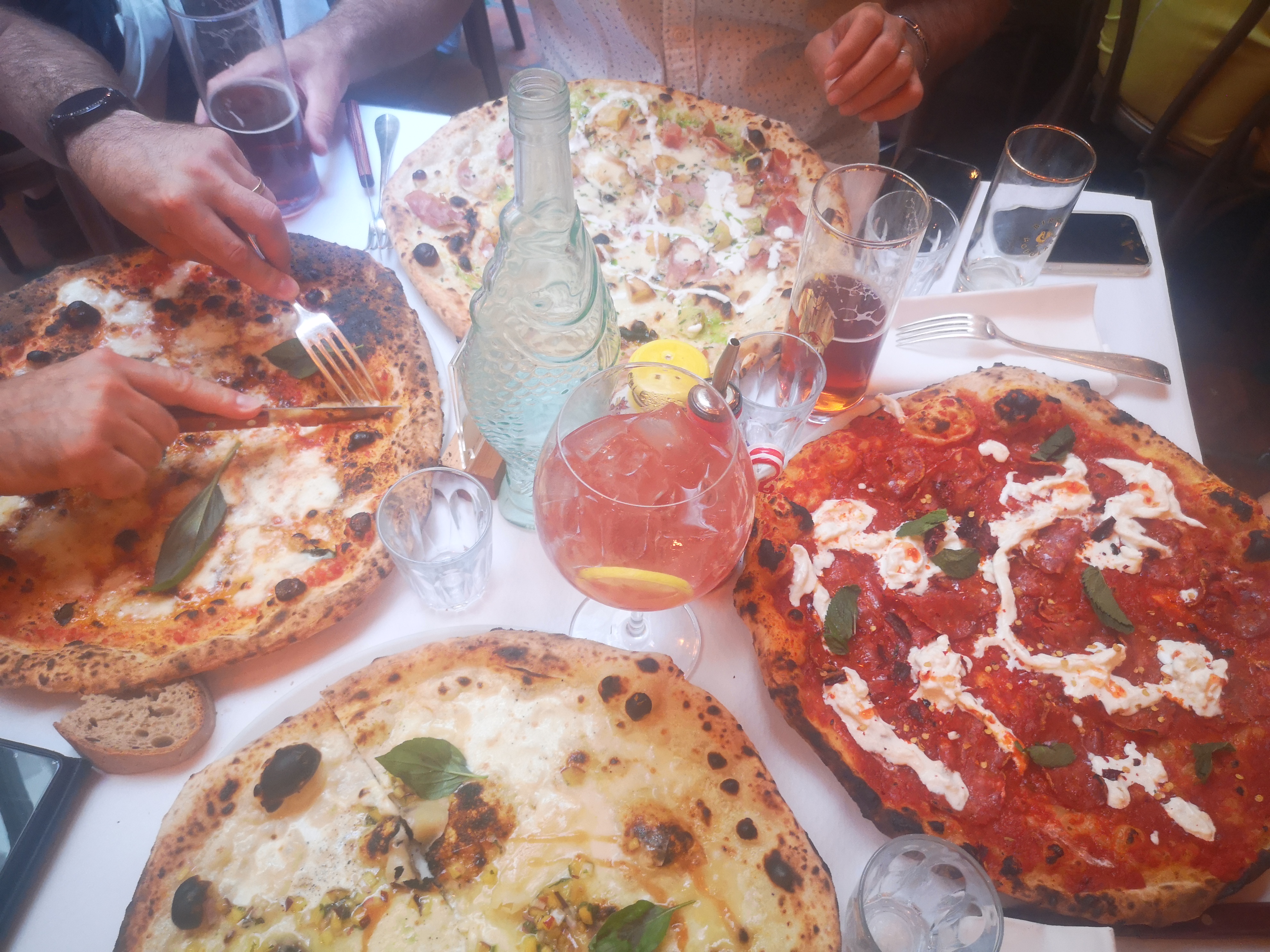 Un décor qui nous plonge dans une ambiance hors du commun ! La vaisselle est très belle et originale. Vous avez de la musique typique italienne avec des serveurs qui parle et qui sont peut-être d’origine italienne. Le service est rapide et très chaleureux. Les cocktails virgin sont très généreux (beaucoup dans le verre) et pas trop sucré avec un goût original. Nous avons trouvé de VRAIES pizzas ! En plus, elles sont délicieuses et ÉNORMES tout en étant très légères (photos : pizza à la truffe/anchois). Pour finir, le tiramisu est un VRAI tiramisu qui a vraiment rappelé celui de la grand-mère, c’est la première fois que je trouve un restaurant qui sait le reproduire. Les plats sont très copieux et vraiment délicieux, de plus le service peut s’adapter à ce que vous demandez, venez sans hésiter. Petit conseil réservé bien à l’avance, car c’est souvent complet ! (grand succès). Nous reviendrons sans problème pour passer une super soirée.