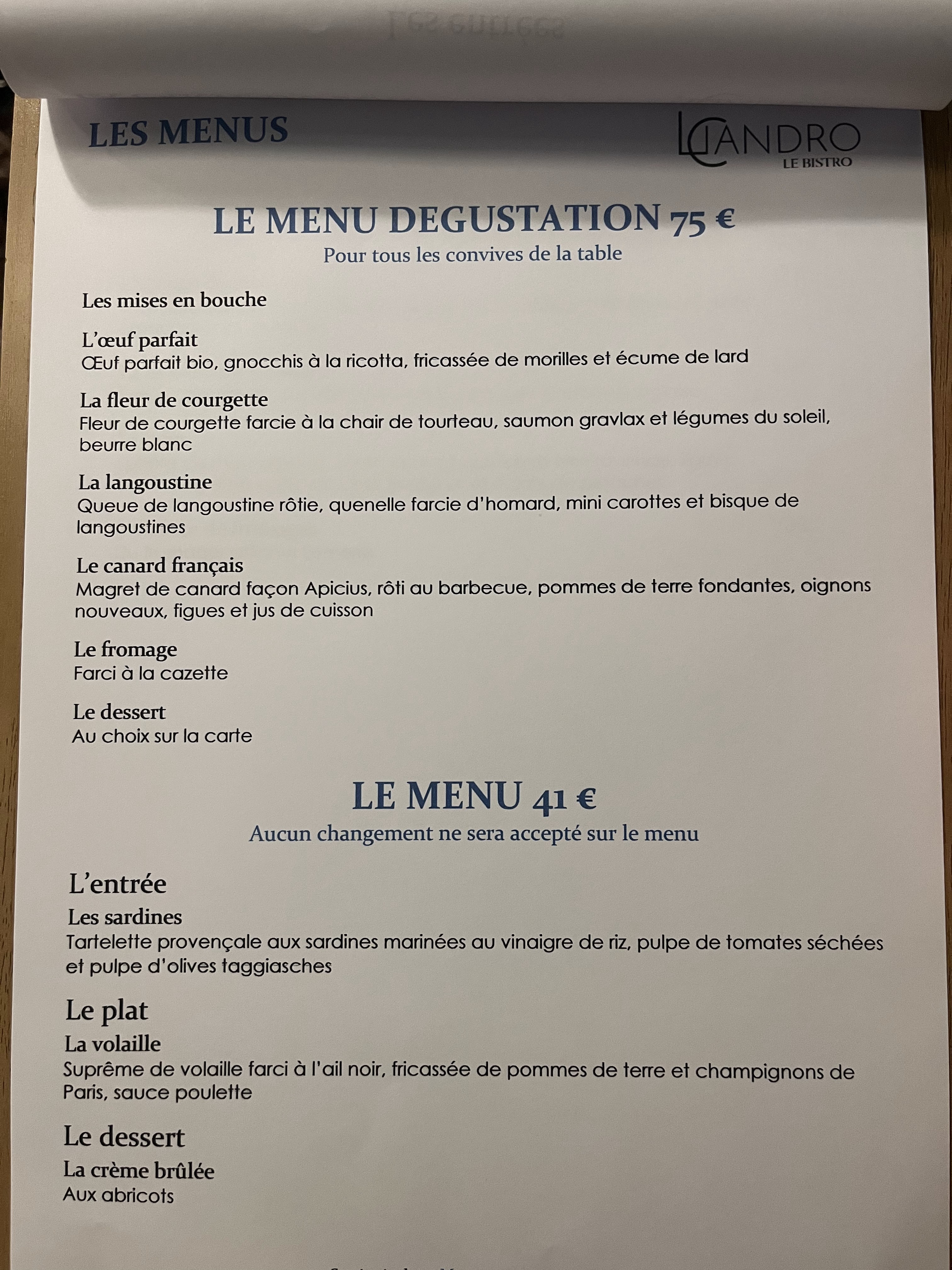 Licandro est un petit restaurant très chaleureux où où dîne merveilleusement bien. Je suis venue avec mon petit ami, nous avons pris le menu à la truffe que je recommande 1000 fois ! Une explosion de saveur, de l’originalité, les quantités parfaites, les sauces divines et un dessert reprenant ! Le service était parfait, ils sont vraiment très souriants et agréables. Nous avons pris pour accompagner un château neuf du pape, une excellence en bouge. Il n’y a aucune hésitation à venir tester Licandro, juste trouver les bonnes personnes avec qui partager ce moment gustatif d’exception 😋