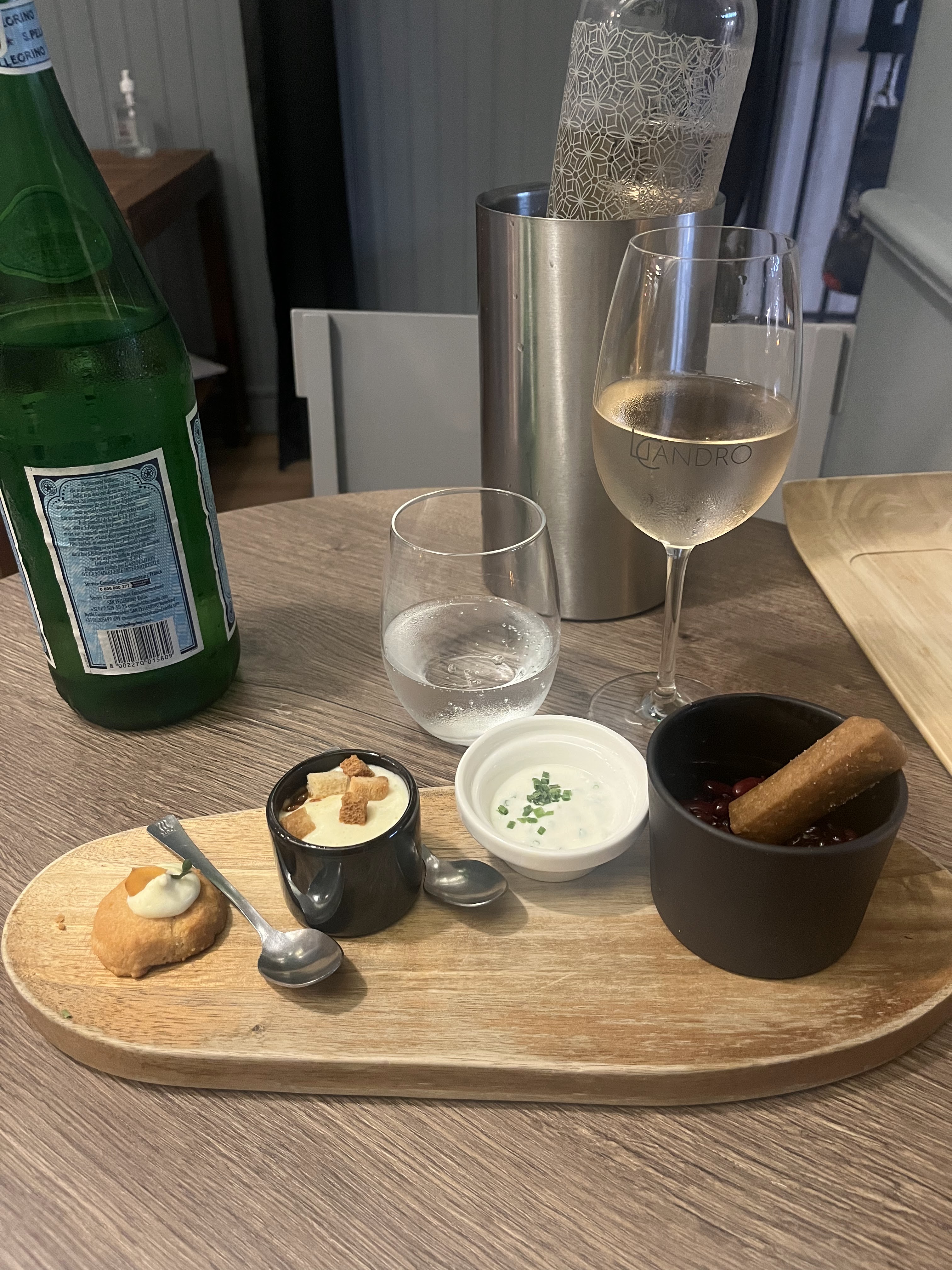 Licandro, quelle découverte que l’on aimerait garder pour soi, et pour lequel on souhaite égoistement qu’il n’ait jamais l’étoile qu’il mérite amplement. Le décor s'il colle bien à l'objectif bistro, mériterait sans doute quelques aménagements pour être en adéquation avec la qualité des mets stupéfiante. Je ne m’attendais pas à être autant surpris et me délecter en faisant le choix du menu dégustation. Des mises en bouche au dessert, tout est parfait, aucune faute de goût. J’y retournerai sans hésiter, et sans trop tarder…j’aurai du mal à ne pas choisir à nouveau le menu dégustation. Chapeau bas ! bravo à cette équipe