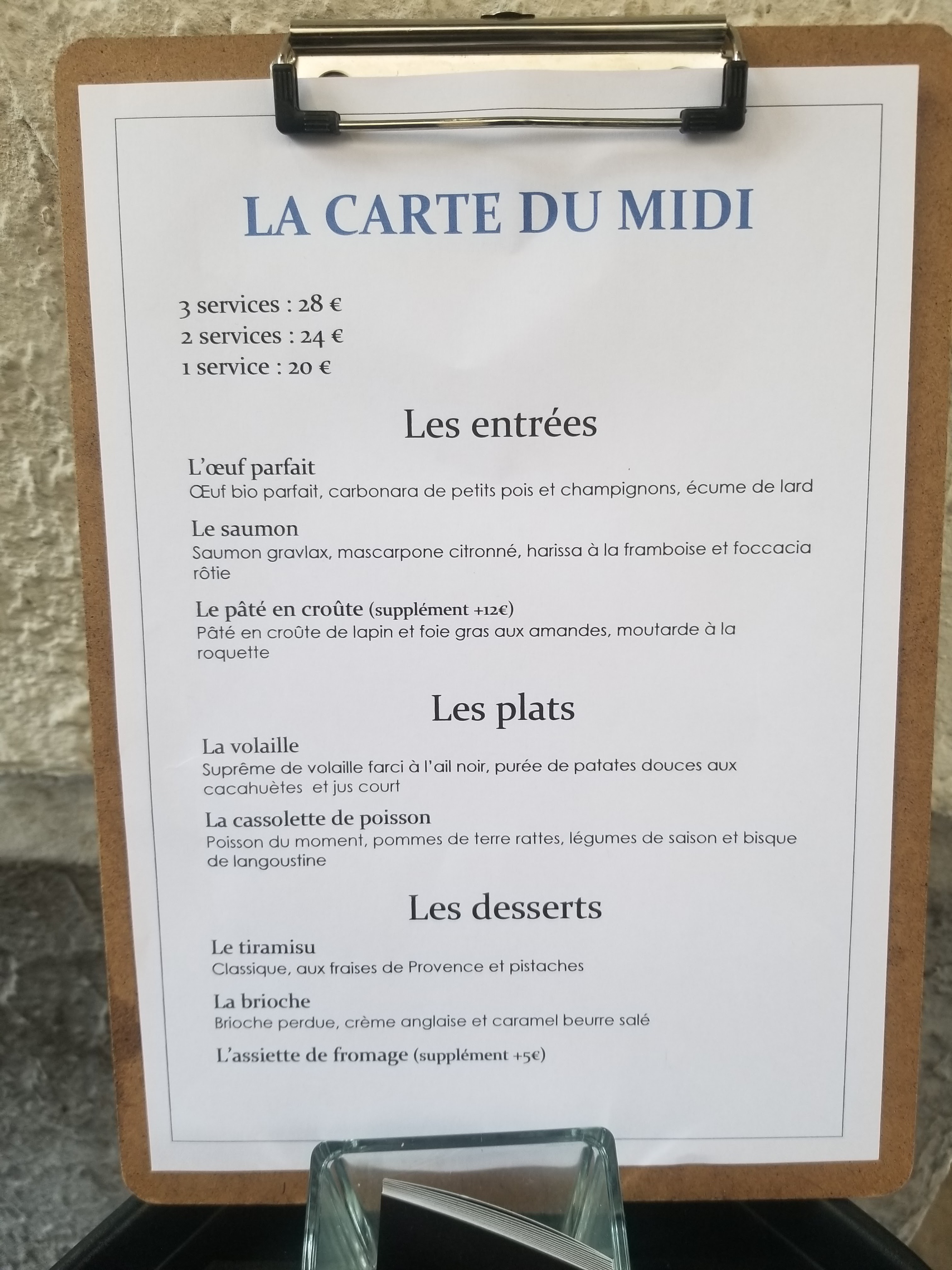 Une bien agréable découverte au cœur du centre d’Aix en Provence. Un menu du midi au rapport qualité prix irréprochable. 22€ deux services , 27 le menu complet. Pour nous aujourd’hui c’était entrée/plat quantité qualité et service impeccable. Foncez vite découvrir cette très bonne petite adresse