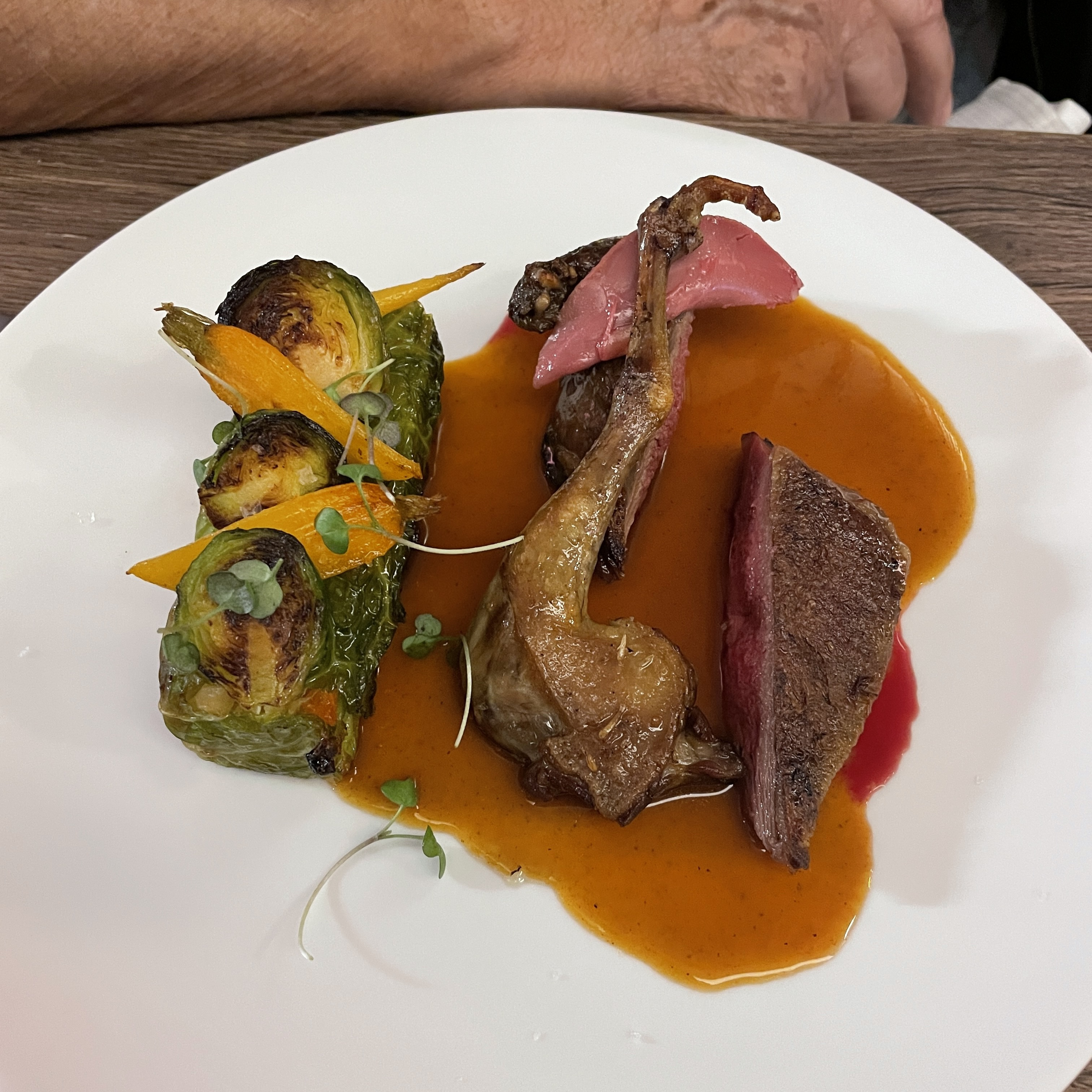 Rare de retrouver dans un petit restaurant un plat du type : lièvre à la royale (sauce au sang, comme le canard). Parfaitement exécuté. Nous nous sommes régalés avec un vrai foie gras mi cuit. Merci de votre engagement culinaire ! Je recommande les yeux fermés