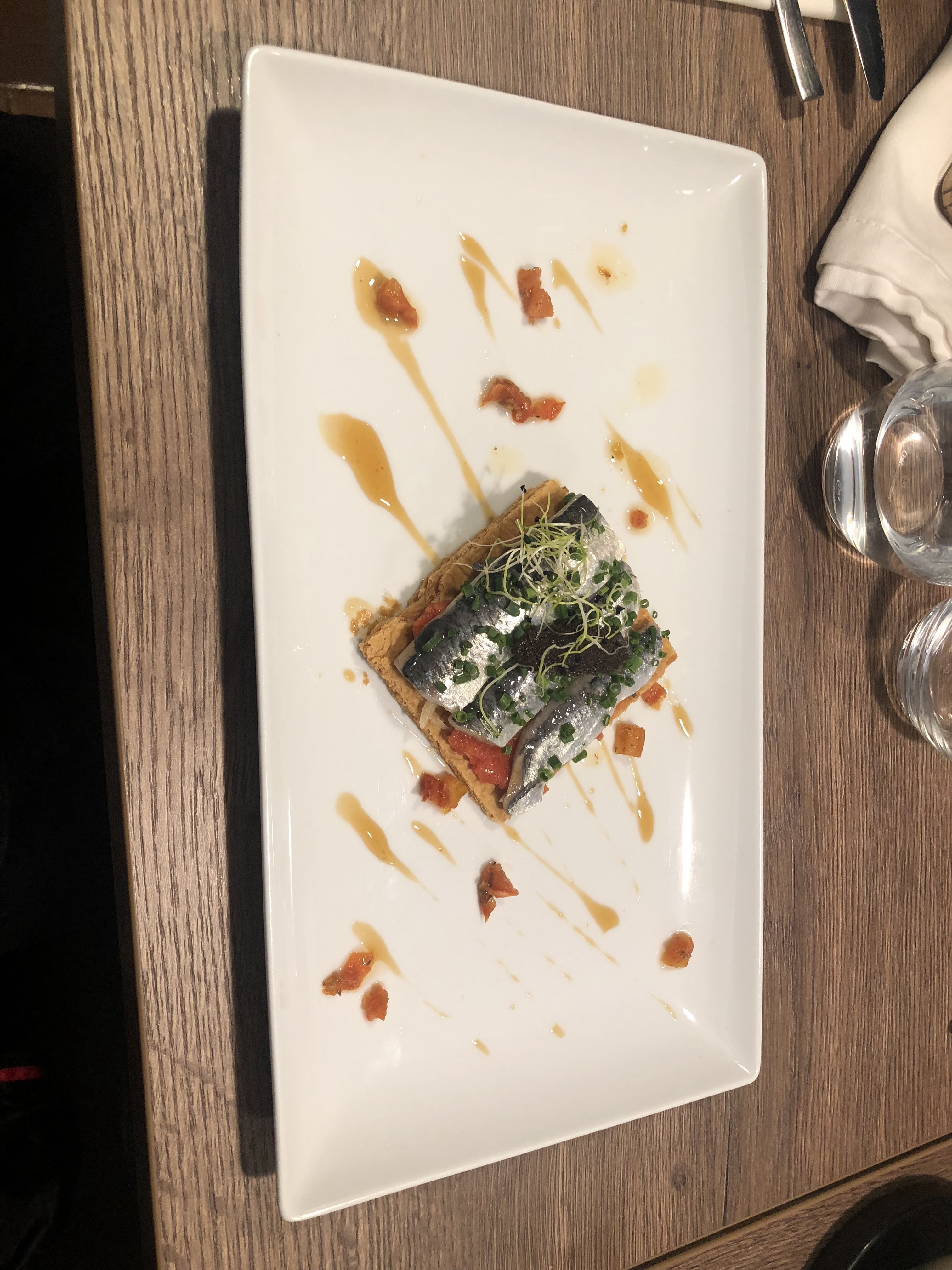 Première imoression pas bonnebcar l acceuil a été un peu froid, on nous a dit qu'il y avait seulement une table dehors et nous avons accepté ssuf qu'une couple arrové après nous, a trouvénplace al'interieur, cela dit la nourriture et la presentation des assiettes étaint super le foie gras savoreux, la tarte aux sardines delicate et le loup grillé et les gambas avec risotto une chose de rêve! Nous allons y retourner, bonne soirée