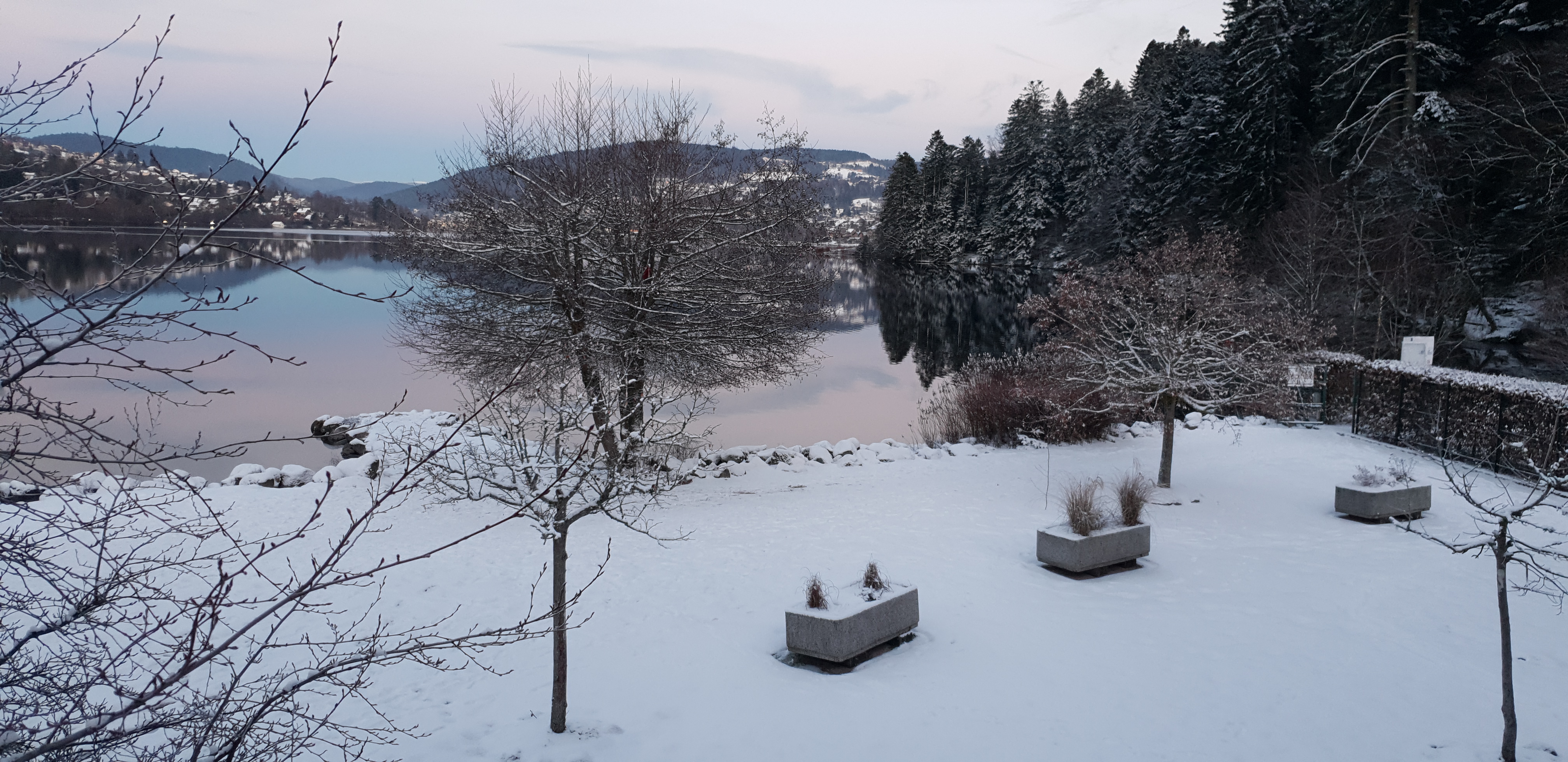 Une vue magnifique depuis l'appartement, un canapé face au lac enneigé : cadre féérique ! Les hôtes sont très sympathiques et arrangeants, le restaurant est excellent : nous n'avons pas cherché plus loin et pris tous nos repas la bas ! Nous n'hésiterons pas lors de notre prochain séjour à Gérardmer ! (La chambre 5..)