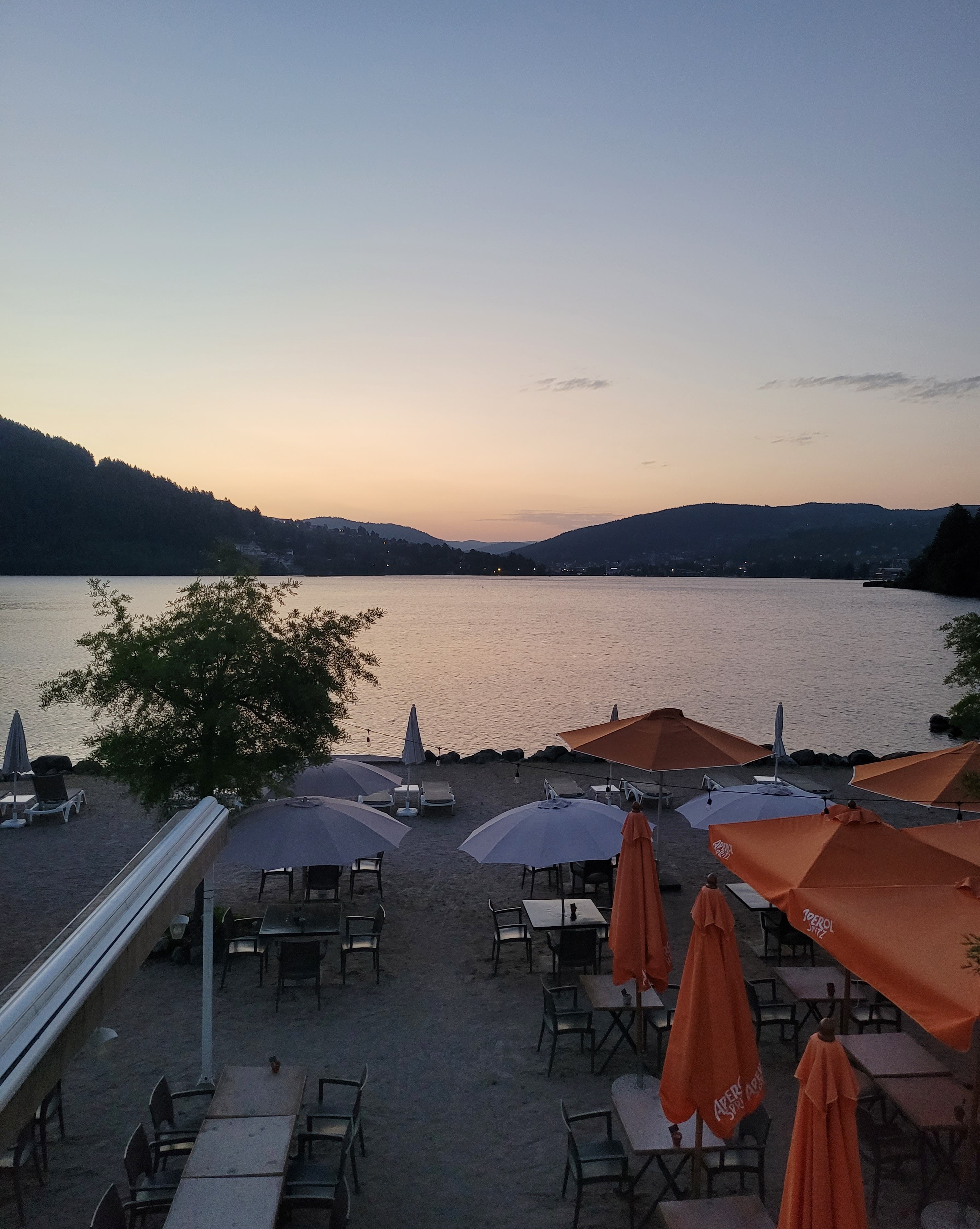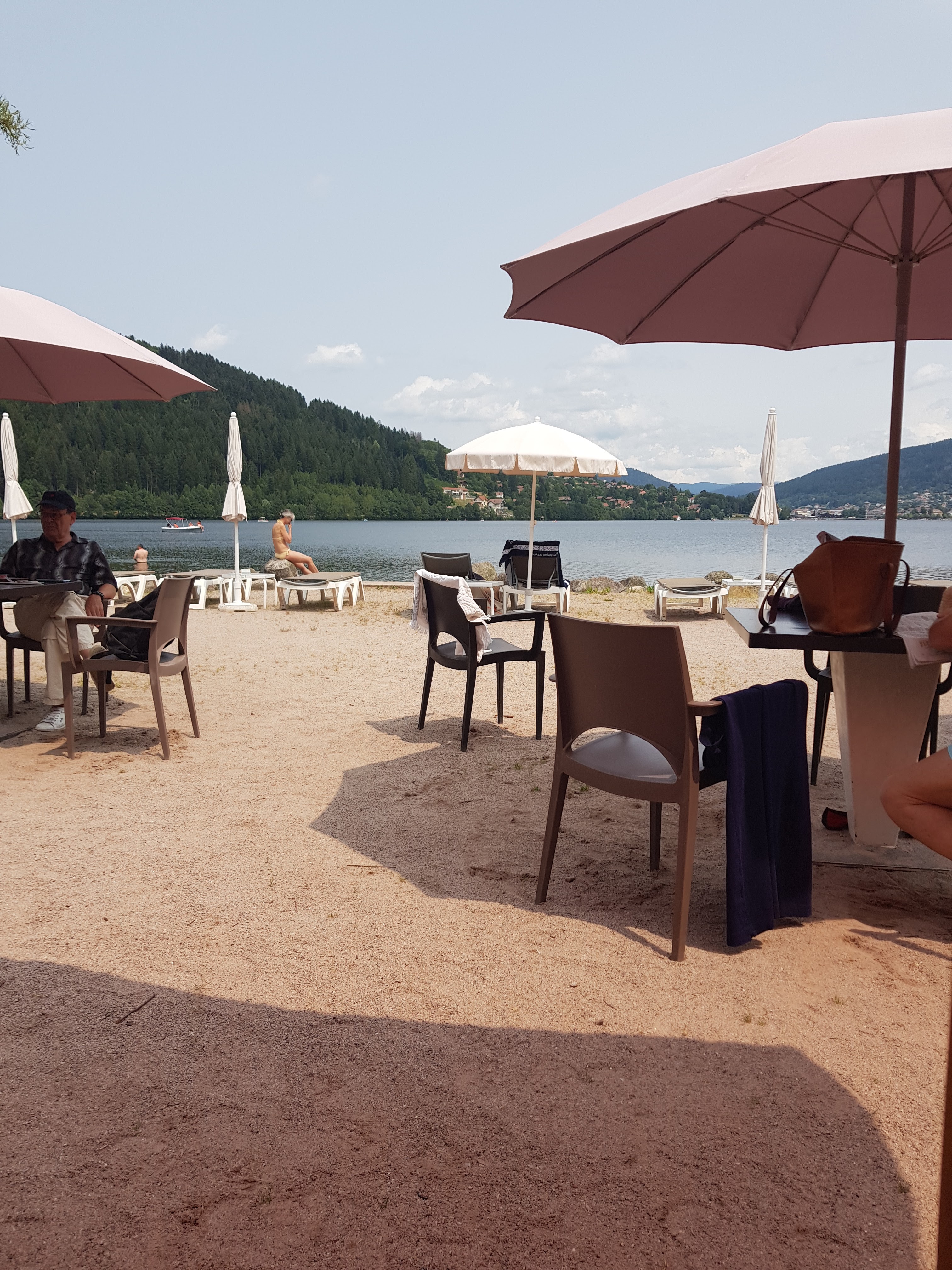 Nous sommes venus par hasard pour déjeuner à midi, nous passions la journée à Gerardmer, bel emplacement, terrasse les pieds dans le sable ,mais quand au repas .... déjà réduit et limité....pas de carte ! Et quelle déception dans le service.....avons pris un apéritif pour patienter.....je dis bien patienter !!!pour être servi plus d'une heure après...🙃🙃pour une salade.... vosgienne qui heureusement était bonne .Et nous n'étions pas les seuls dans ce cas. Vraiment dommage pour ce lieu au bord de l'eau .Ce n'était peut-être pas le bon jour......