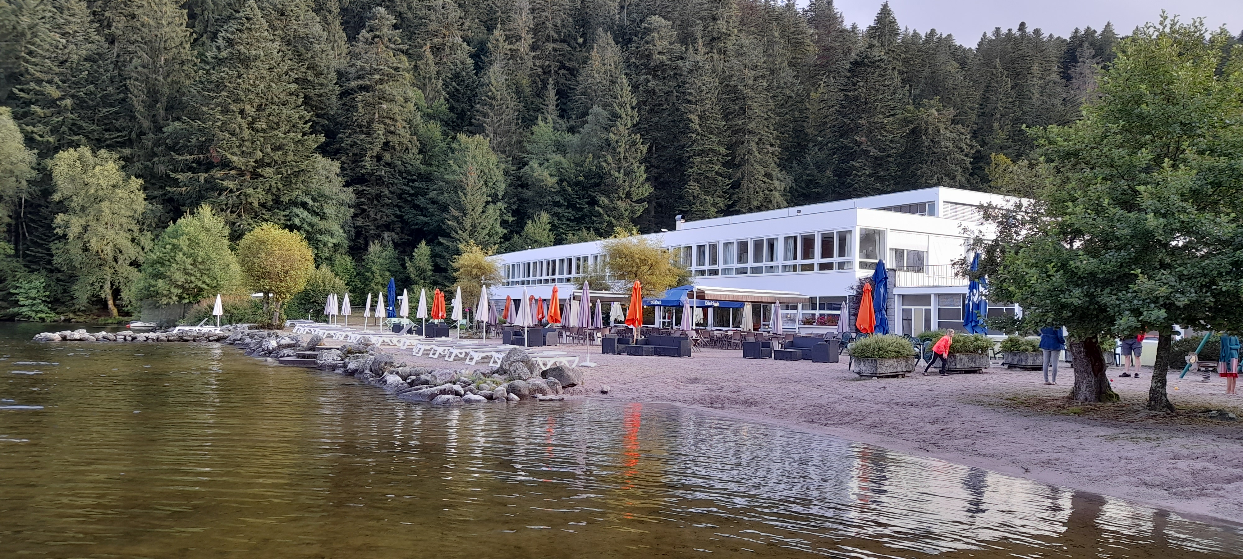 On y est tellement bien qu'il est difficile d'avoir une réservation. Emplacement plus que parfait, au bord du lac. Plage privatisée pour les clients mais la location de transats et de tables est plus qu'excessive. Service restauration et bar. Les petits appartements sont agréables, avec une magnifique vue sur tout le lac. Petit santier à côté de la plage longeant la forêt et le lac : c'est splendide.