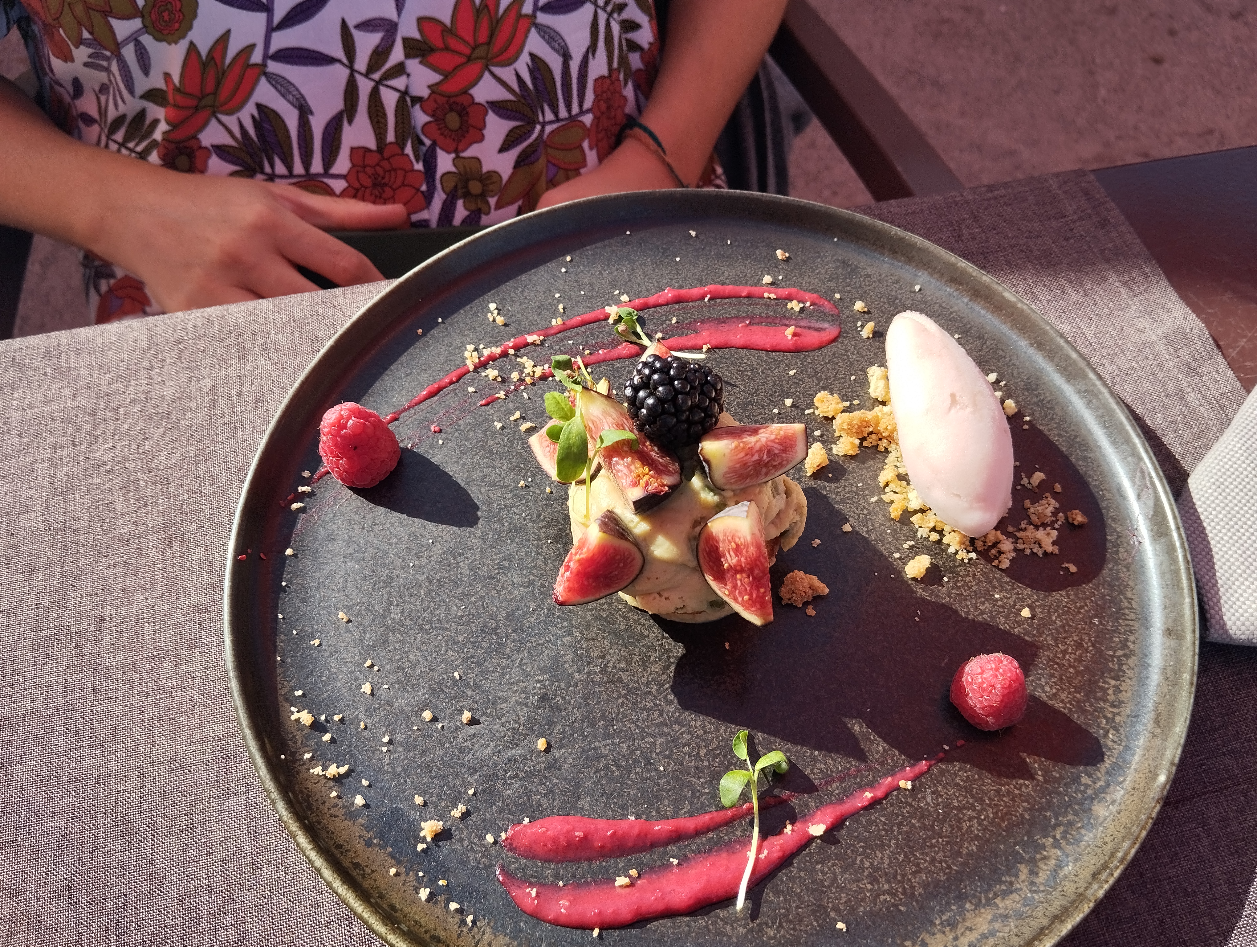 Très bel endroit. Petit écrin de verdure de la station et au calme. Terrasse très agréable. Cuisine raffinée tant visuellement que gustativement. Les plats sont préparés avec soin! L'accueil est chaleureux et le service est efficace. Le petit bémol, l'aspect extérieur du bâtiment mériterait d'être rafraîchit et modernisé mais face à la qualité du reste c'est un détail! Néanmoins je me laisserai bien tenté par un petit séjour en appart Hotel prochainement! De plus il y a ce qu il faut pour des bébés (change, assise, espace calme et climatisé, balançoire, espace baignade) un vrai plus pour les familles!