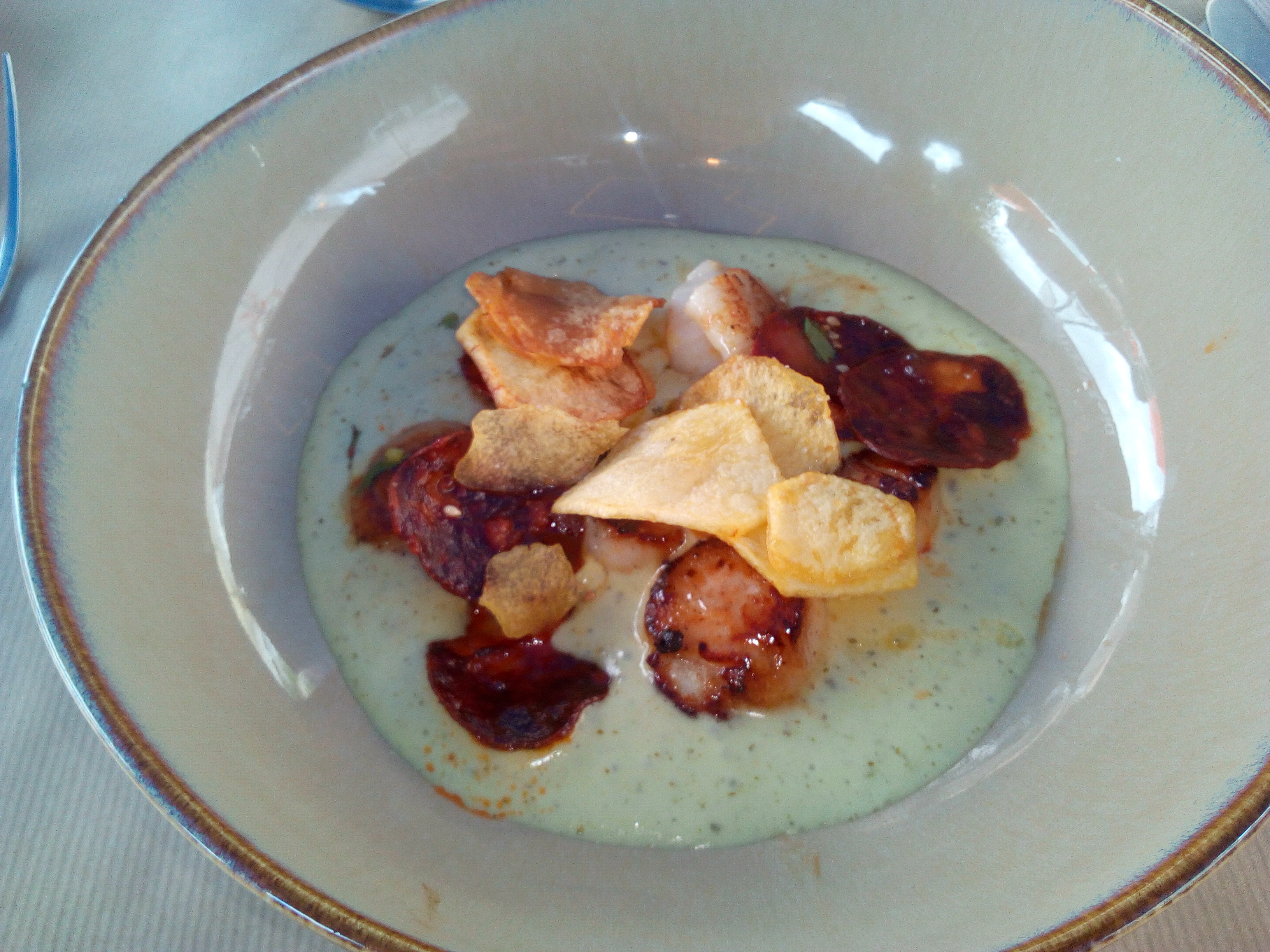 Très bon ! L'amuse bouche aurait mérité d'être + salé, entrée très bonne mais dommage qu'il n'y ait pas le corail de la Saint Jacques (c'est le meilleur), plat (saumon) très bon mais un peu cher pour ce que c'est et le dessert (gâteau chocolat avec fraises) excellent ! Très belle vue