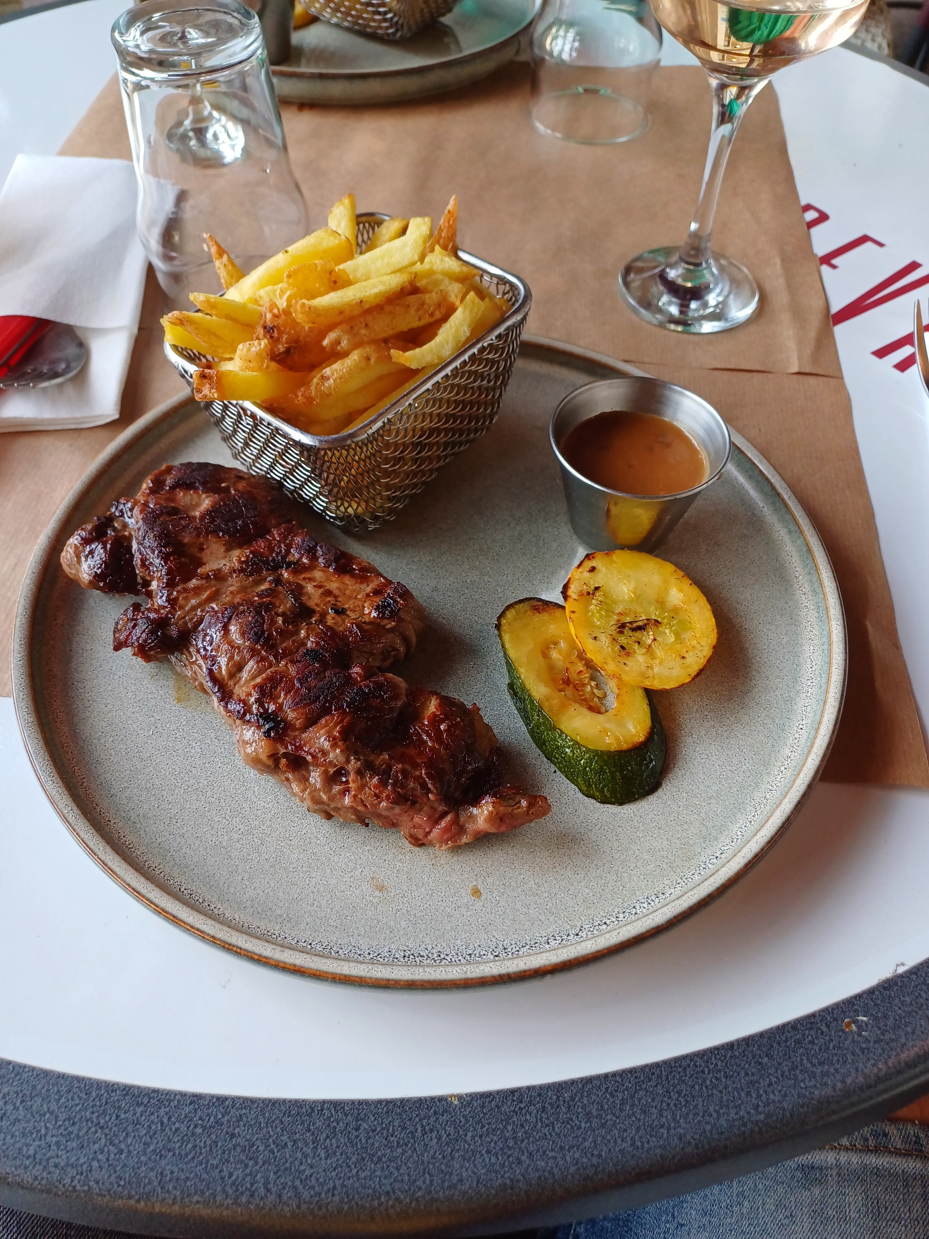 Publicite mensongère... Quand je commande une entrecôte à 23e j'ai envie d'une entrecôte et pas d'une basse côte dur comme une semelle. Magret demandé rosé par ma femme, servie bien cuit... Ça encore ça peux arriver mais on vent pas une basse côte pour une entrecôte !!! A bon entendeur patron 😉