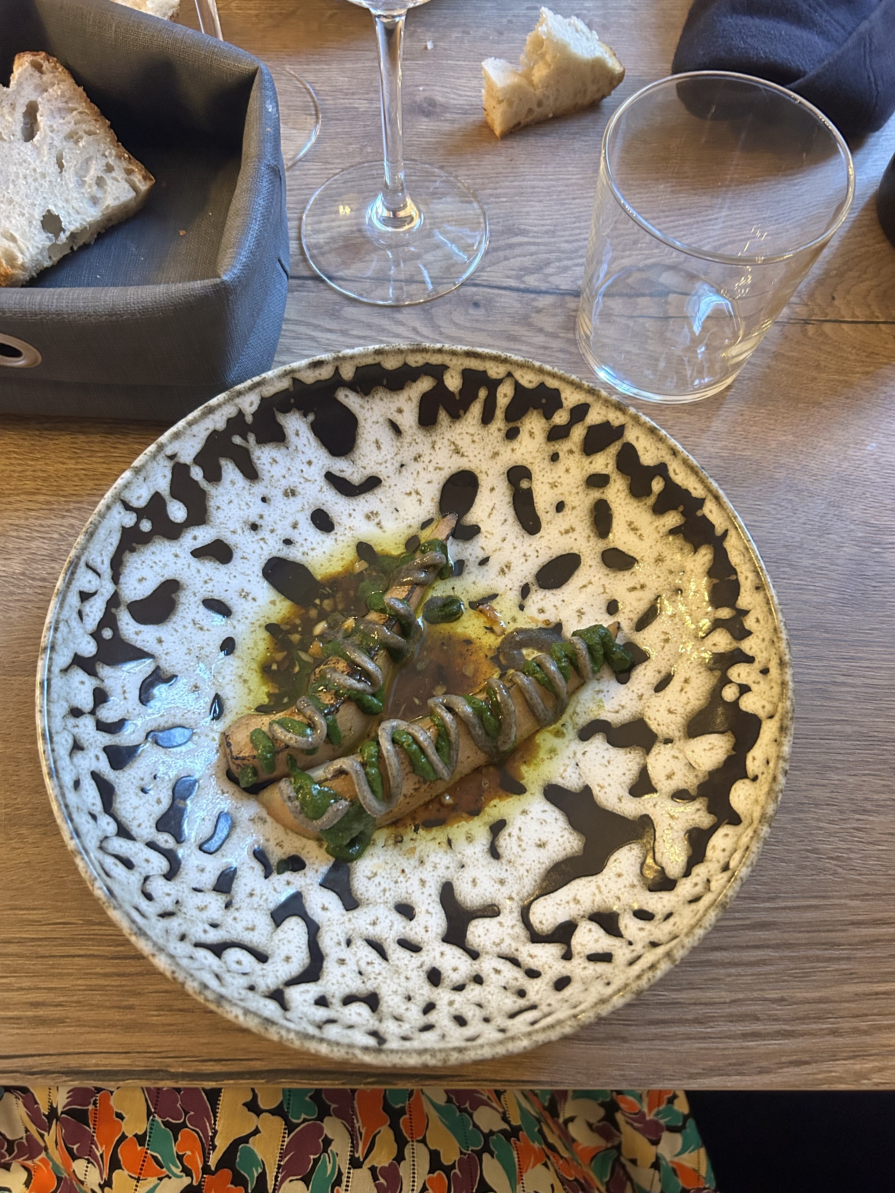 Vraie déception. Deux petits morceaux de porc coupés bien trop fin en guise de plat principal. En dessert, une sorte de pain au caramel beaucoup trop sec. L’addition : assez salée. Plus de 100 € pour deux le midi. On s’est laissé conseiller par le serveur pour nos verres de vin. On lui a fait confiance, sans prendre la peine de regarder le prix. Dix euros le verre. Ça fait un peu cher. Pour couronner le tout, la décoration de l’endroit est qu’ourse le moins discutable.