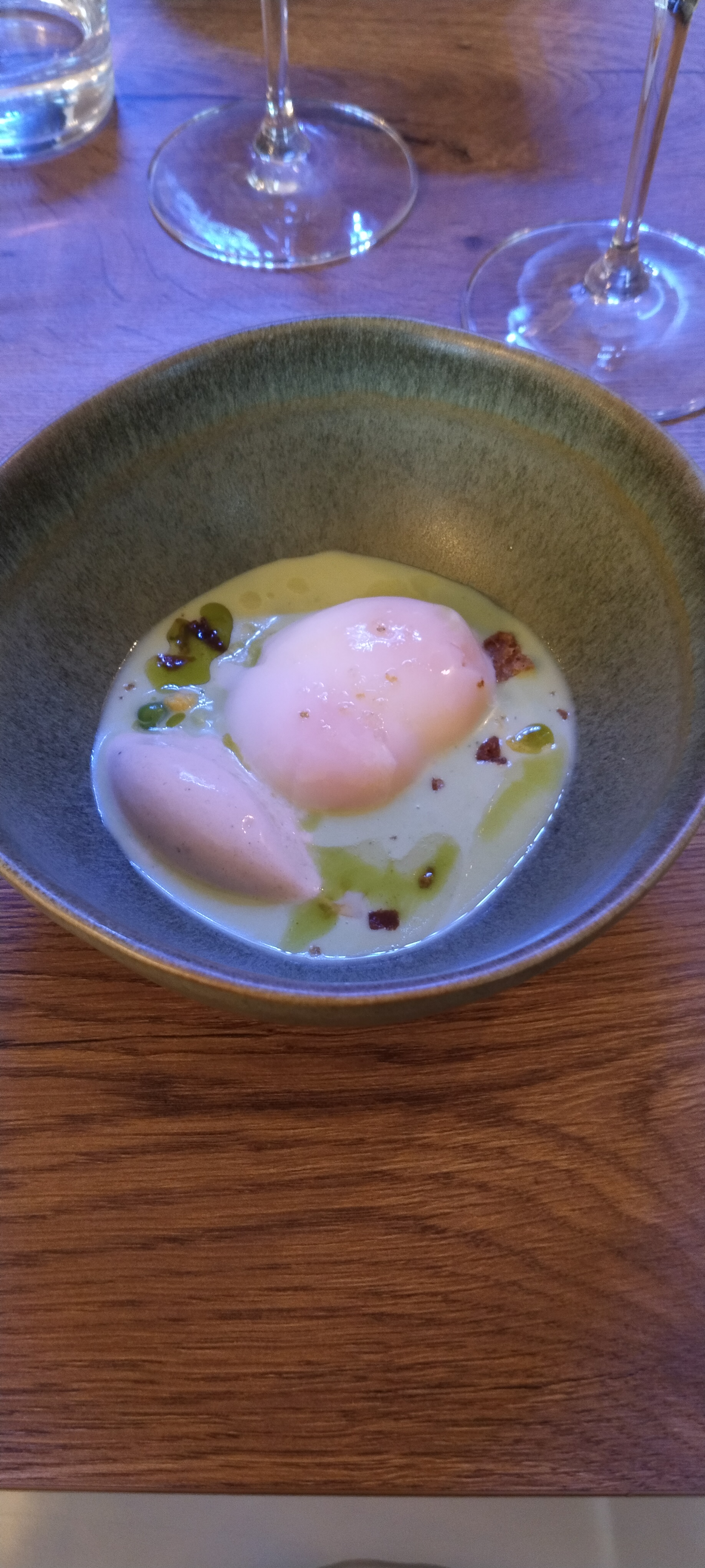 Déçue de ce repas concernant le rapport qualité prix : 65 € pour un repas du midi.. Œuf parfait dans oignon Un morceau de champignon avec son jus Un petit morceau de merlu pas assez cuit Un pré dessert ( bugne avec boule de glace) servi sans assiette et à attraper avec la main. Youpi quand la vigne se casse que la glace et l’autre morceau tombe sur la table et que tu es obligée de ramasser ton dessert avec ton doigt et de te sucer le doigt. D autre part la glace quand il fait -5 degrés dehors je ne trouve pas cela très adapté Autre remarque déplacée à l Acceuil quant à mon arrivée je demande s’il ne fait pas trop froid dans la salle de restaurant pour savoir si garde mon gilet sur moi ou si je le dépose au vestiaire et qu’on me répond : « hier la salle nous servait de chambre froide »… Bref je ne conseille pas et n y reviendrai pas