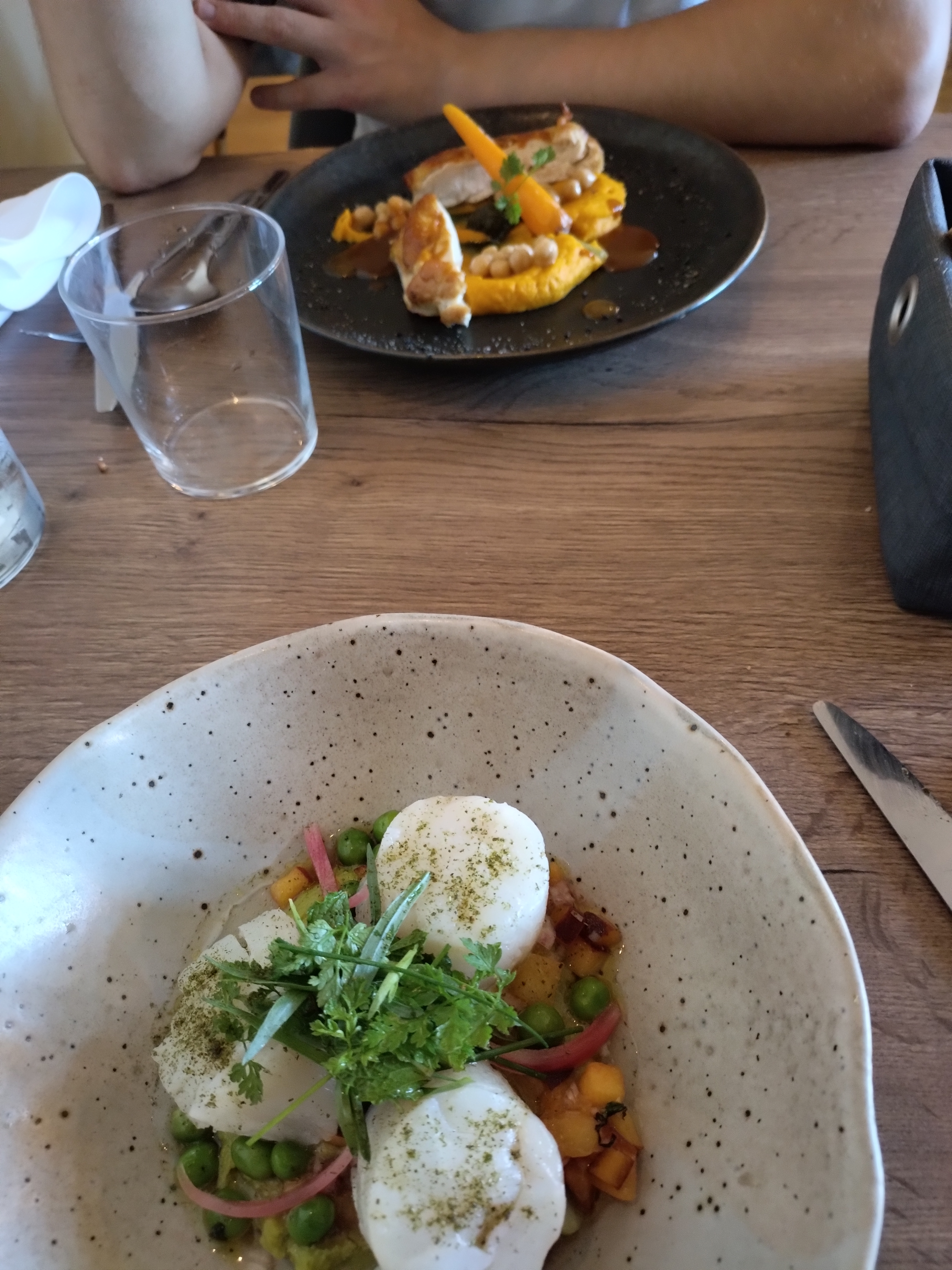 Les plats étaient bon et la décoration de la salle, très végétale, agréable. Cependant, la cuisine comme la salle semblait être sous l'eau... Entre l'oubli du verre de bienvenue à notre table et l'attente de 40 minutes entre l'entrée et le plat, sans même que les assiettes vident ne soient desservies... Des réglages semblent encore être à améliorer dans ce tout jeune restaurant.