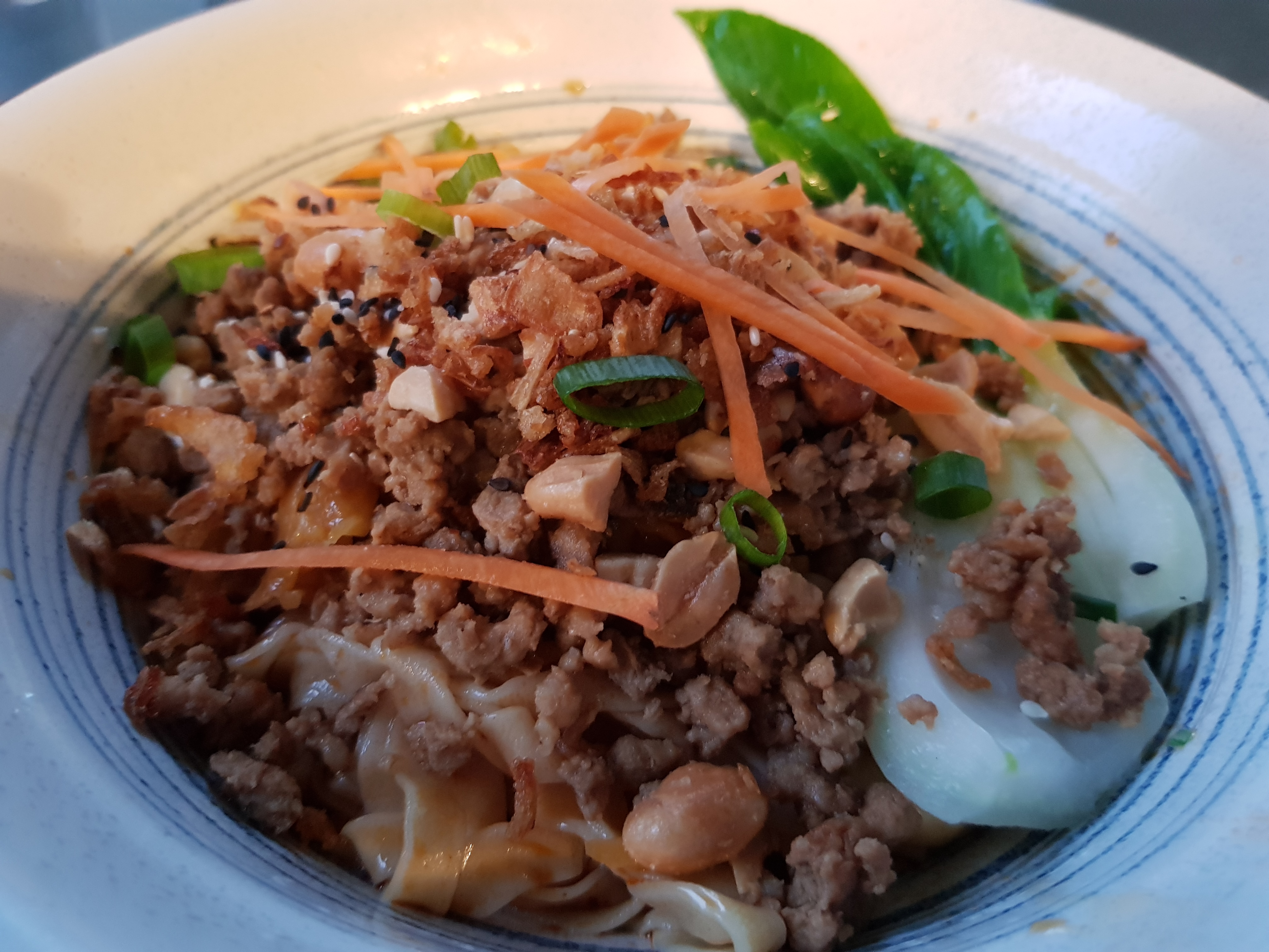Soupe aux raviolis et nouilles au porc délicieuses. Le bouillon de la soupe, tout particulièrement exquis : savoureux et parfaitement pimenté On en redemanderai presque…