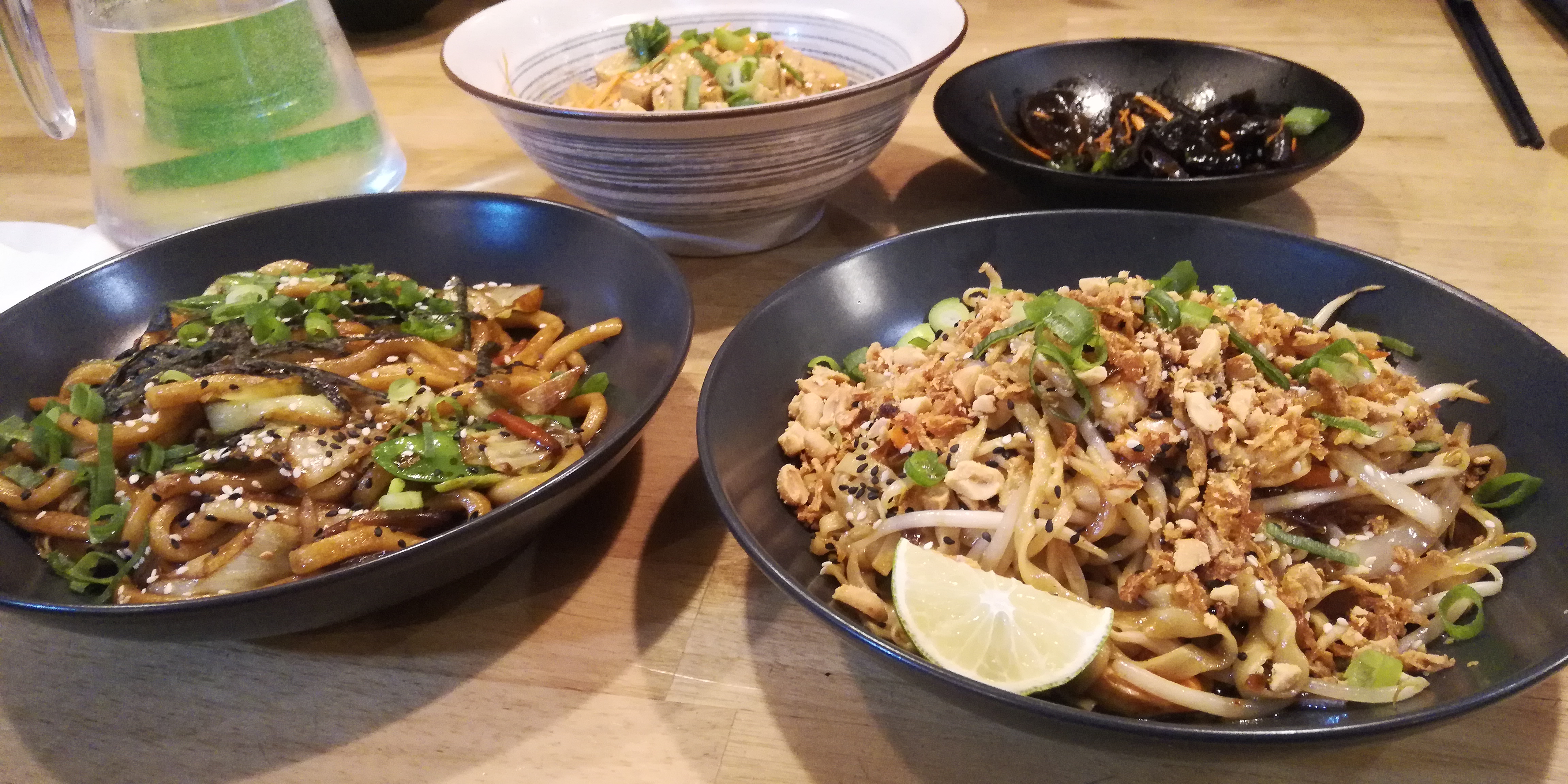 Délicieux ! Les entrées aussi bien que le plat de nouille maison. Les aubergines et le concombre étaient savoureux et très bien cuisinés. Une petite adresse très chouette! Et ils sont adorables