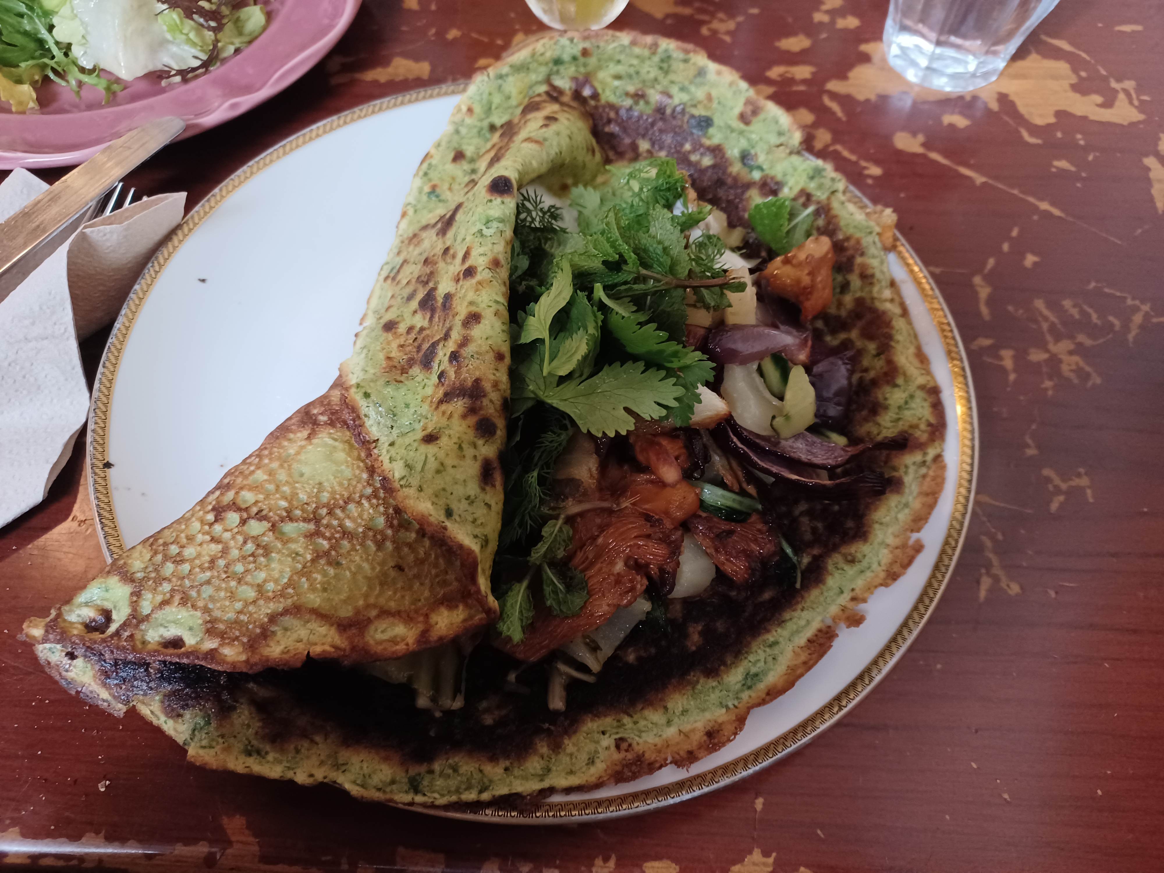 Un super resto un peu caché. Je crois que la carte change chaque jour et surtout selon la saison et je trouve ça génial. J’ai pu manger le ragoût de lentille avec des poireaux et une crème Ricotta citronnée plein de saveur et réconfortant. Puis j’ai pris le gâteau au chocolat noisette avec des graines de sarrasins caramélisé beaucoup trop bon. J’ai pu goûter le plat de la personne qui m’accompagnait très bon aussi avec de la polenta, du choux kale, des épinards, des carottes enfin plein de choses qui se mariaient très bien entre elles (c’est le plat que j’ai pris en photo) Je vous invite vivement à découvrir cet endroit très accueillant, plein de Good vibes et on y mange trop trop bien. Félicitations au cuisinier-es !!