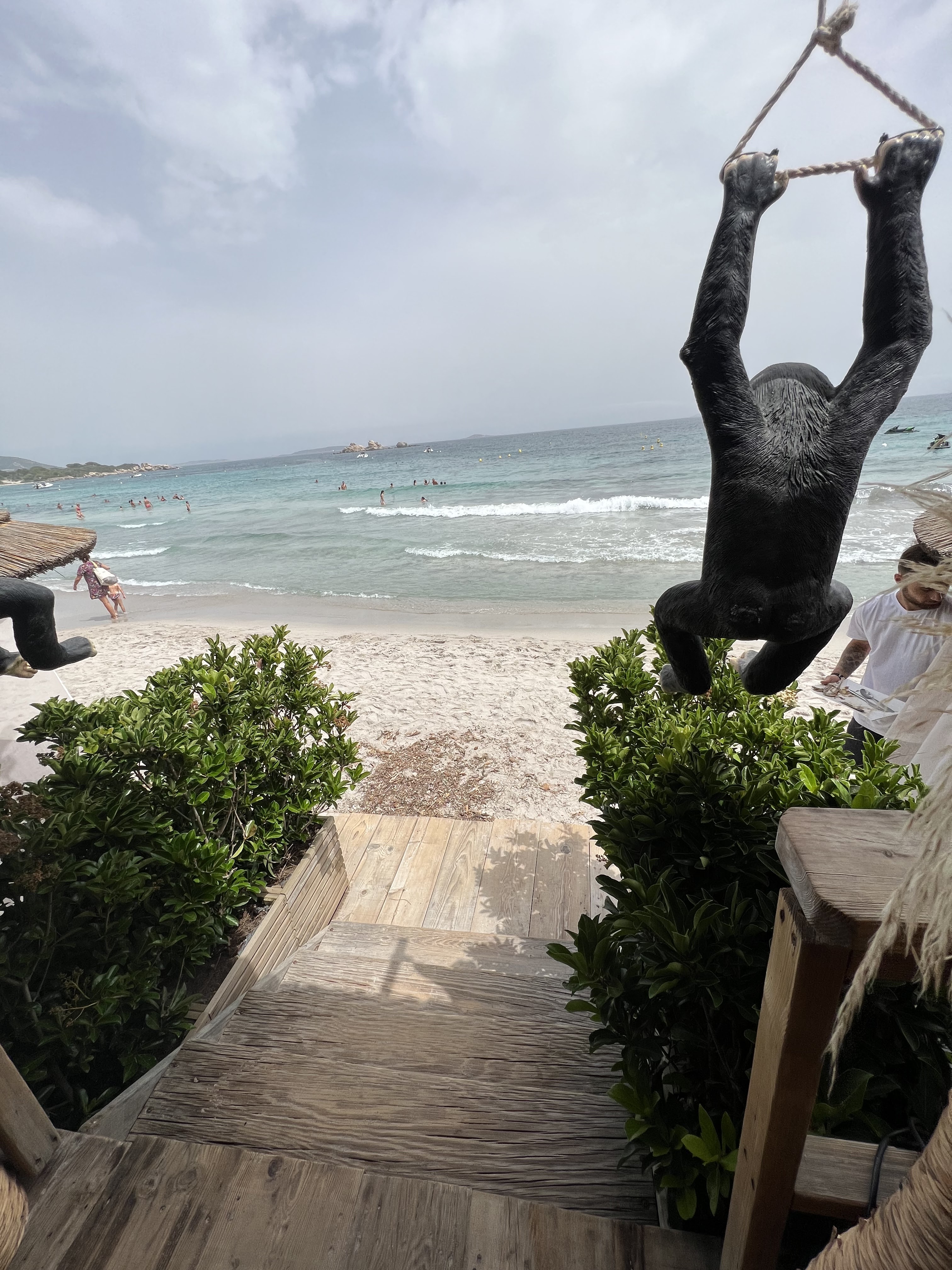Le lieu est très chouette, deco sympa et la plage de palombaggia parmis l’une des plus belles de cette île. Toutefois service de cette plage privée est très décevant à l’exception du plagiste et d’une serveuse très sympathique. Une journée a 900€ tout de même à 8, avec 4 enfants. Un Vin bouchonné. Cuisine moyenne, sans plus. Réflexions à toutes nos demandes Nous souhaitons manger à une table ombragée. Ça tombe bien elles le sont quasiment toutes. Mais pas de chance, pas la notre! « Si vous ne voulez pas de soleil ne venez pas à Palombaggia. » Les douches à l’eau claire sont accessible avec jetons. Mais attention au florilège de réflexions: « La baingnoire est en face » « vous avez vider le stock de jetons »… Le finish, le bouquet final: petite discussion en toute discrétion entre le personnel : « à part la femme enceinte s’était que des c… » Très agréable.