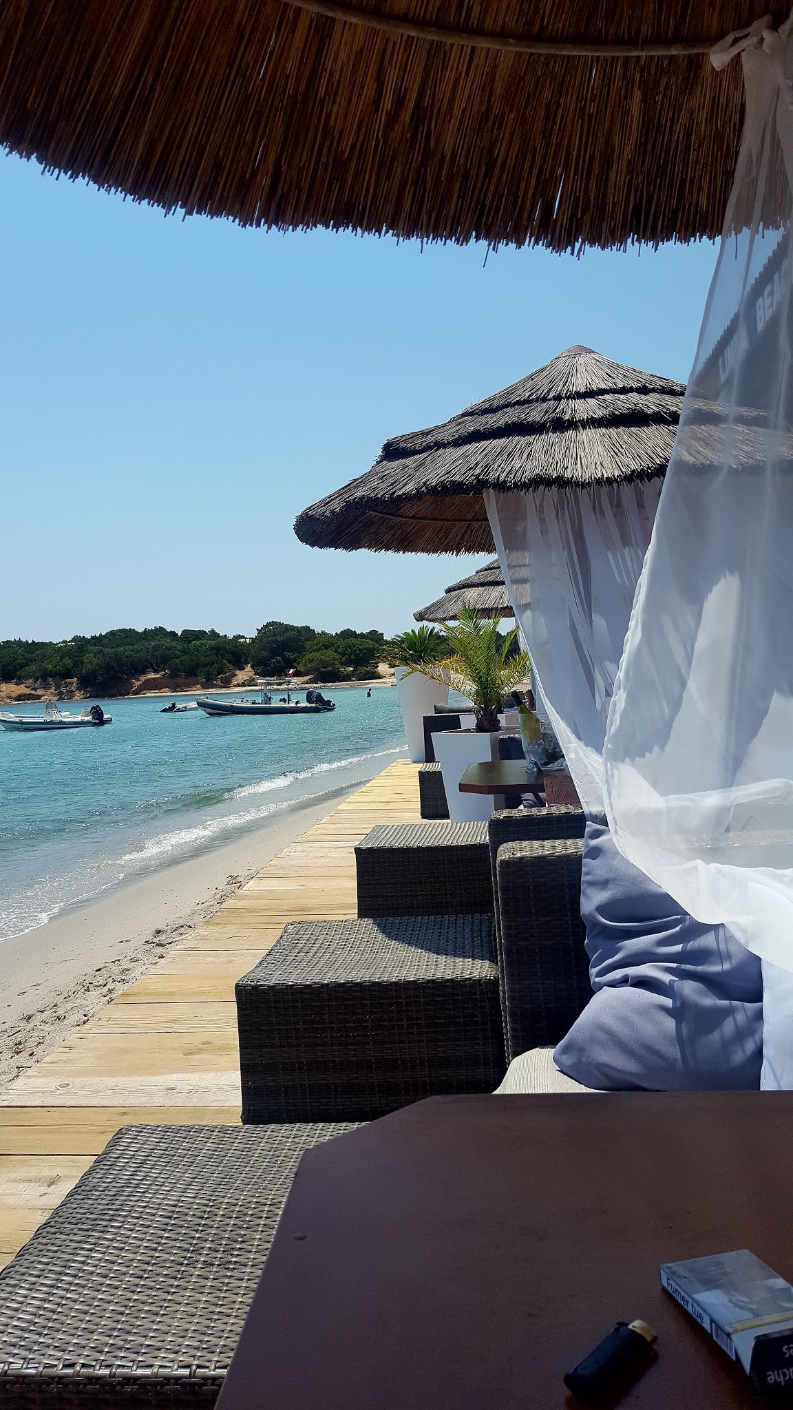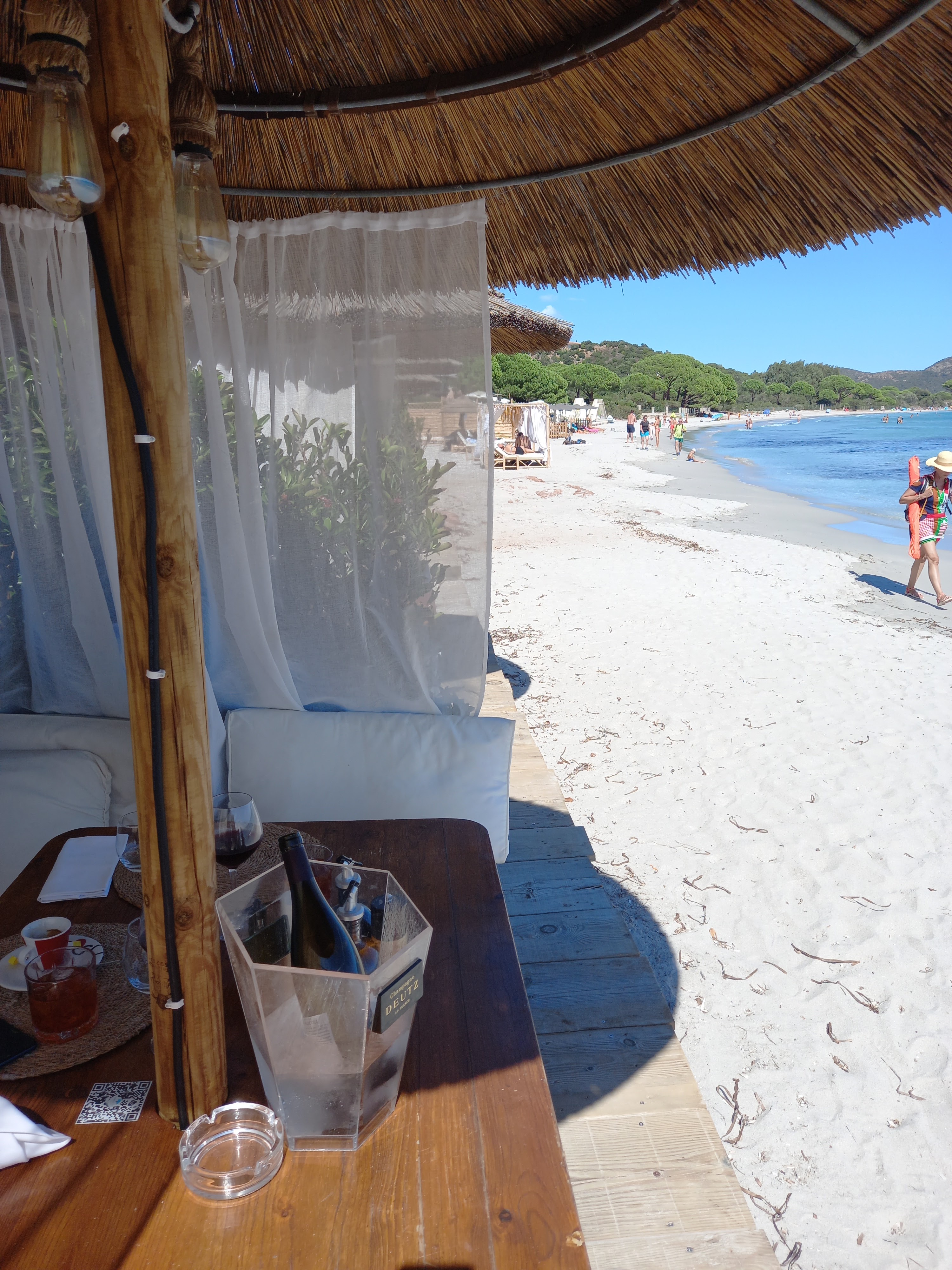 A fuir !!!!!! le dimanche le transat le plus cher 40e par personne , a partir de 15h ils ne vendent que des bouteilles de champagne sur réservation, la sécurité m'a demandé un bracelet pour une coupe de champagne offerte par des clients qui avait réservés qui se sont fait engueuler par la sécurité parceque je n'avais pas de bracelet , j'ai fini par me le procurer, la patronne désagréable est venue me l'arracher parceque je n'étais pas comptée parmi les réservés , sans serviette 40e le matelas en ayant mangé sur place, j'ai limite sentie que je dérangeais parceque je demandé à commander un cocktail, et il faut faire le tour de la plage pour aller aux toilettes, je ne laisse jamais de commentaires mais là c'est trop, on vous impose de ne pas commander parceque c'est complet, on vous impose une bouteille de champagne mais vous n'y avait pas droit parceque c'est complet, après avoir passé une période de privation avec la pandemie tomber sur des restaurateurs dans la restriction ça étouffe ca aura été notre pire expérience en Corse, j'ai du aller à la plage privée d'à côté pour commander un verre à emporter, hallucinant.