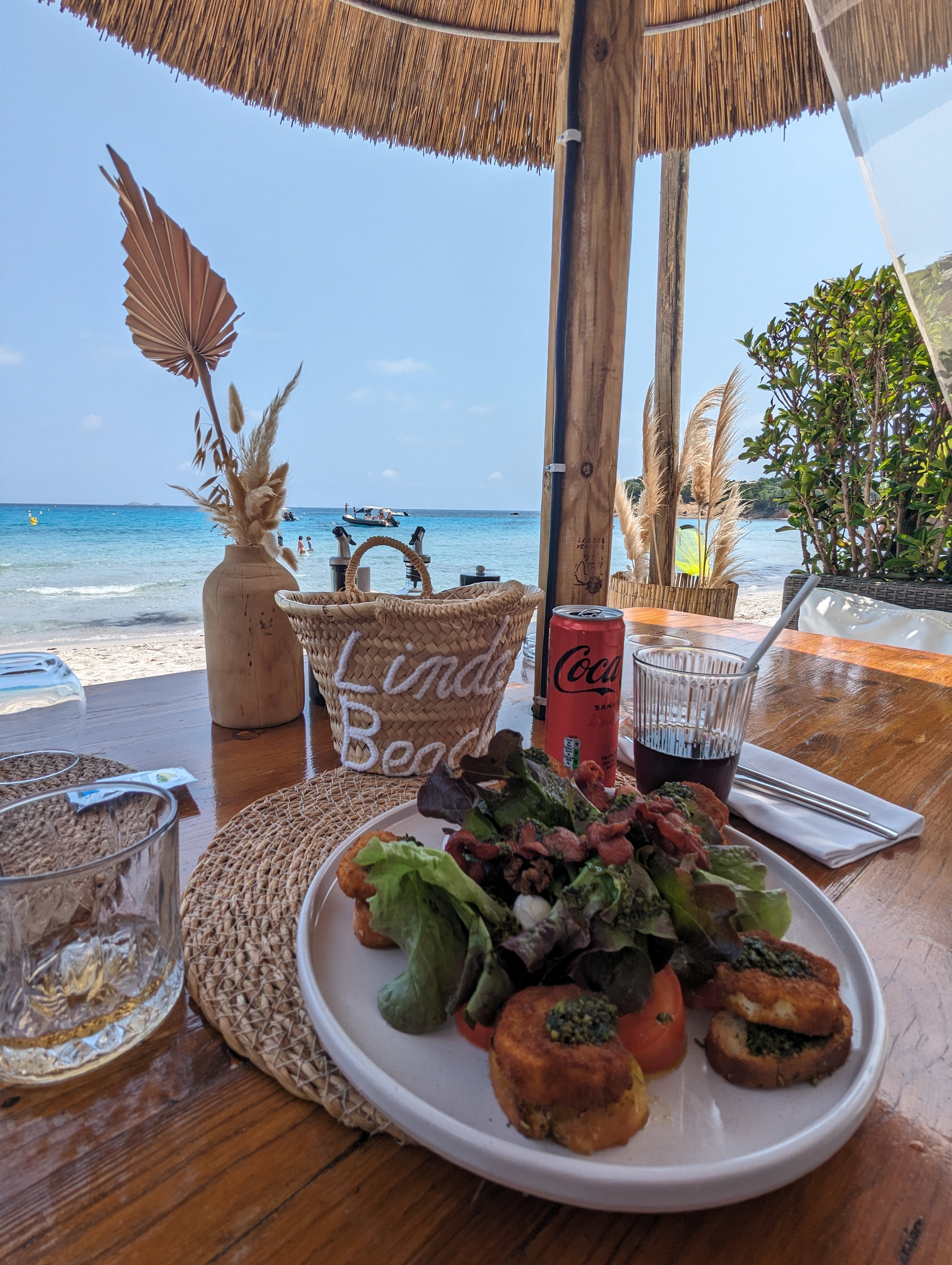 Super expérience au Linda Beach 🏖️! Tout d'abord une superbe paillote décorée avec charme et goût ! La décoration est soignée et chic ! L'ambiance est plaisante et agréable et le cadre que dire sur la plage de Palombaggia ! Eaux chaudes cristallines et sable fin ! Assurément une des plus belles plages autour de Porto Vecchio ! La cuisine était excellente, service rapide ! Je conseille le Moule Frites Poulette à la fois copieux et savoureux ! Enfin l'accueil et le personnel là c'est la cerise sur le gâteau ! Nous avons été accueillis 2 jours de suite avec professionnalisme et bonne humeur par une équipe dynamique et à l'écoute de tous nos besoins ! Toujours une petite attention pour que tout se passe bien ! Super placement niveau transats et table de rêve pour manger face à la mer... Bravo à eux et merci 👏🏾 Je recommande !