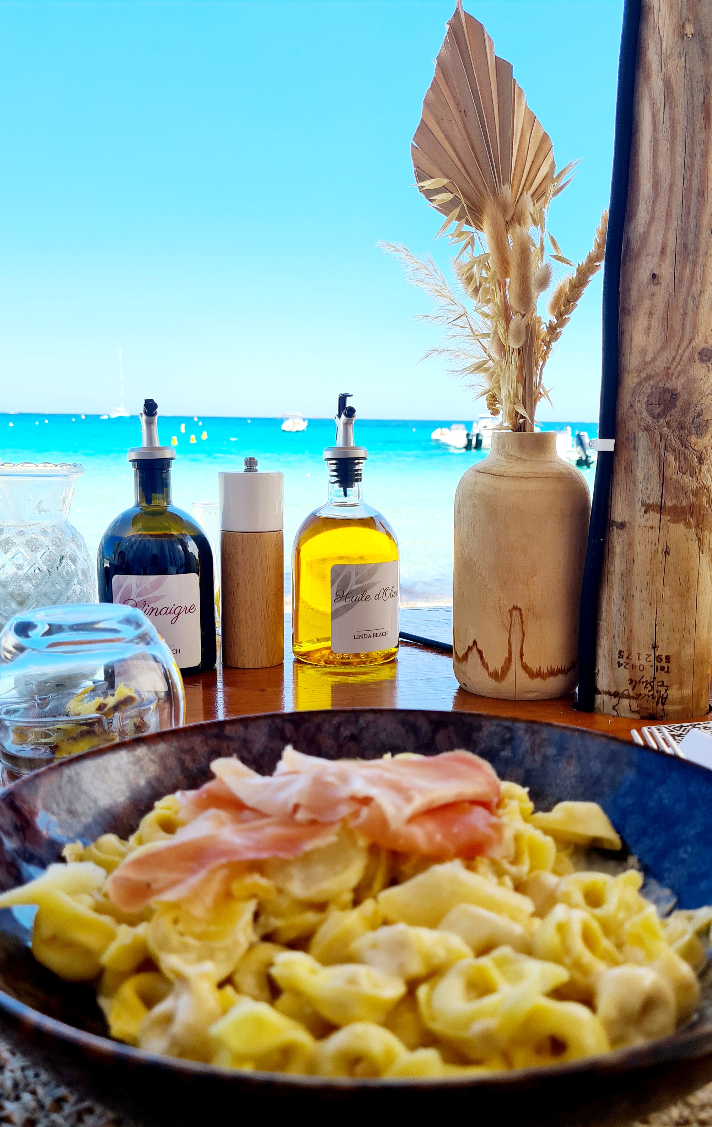 Un endroit magique, table baldaquin charmante et romantique…malgré un resto plein, la sensation d’être seul sur la plage…Côté menu: loup de mer/ langouste/ linguine aux gambas/Desserts sont délicieux.
