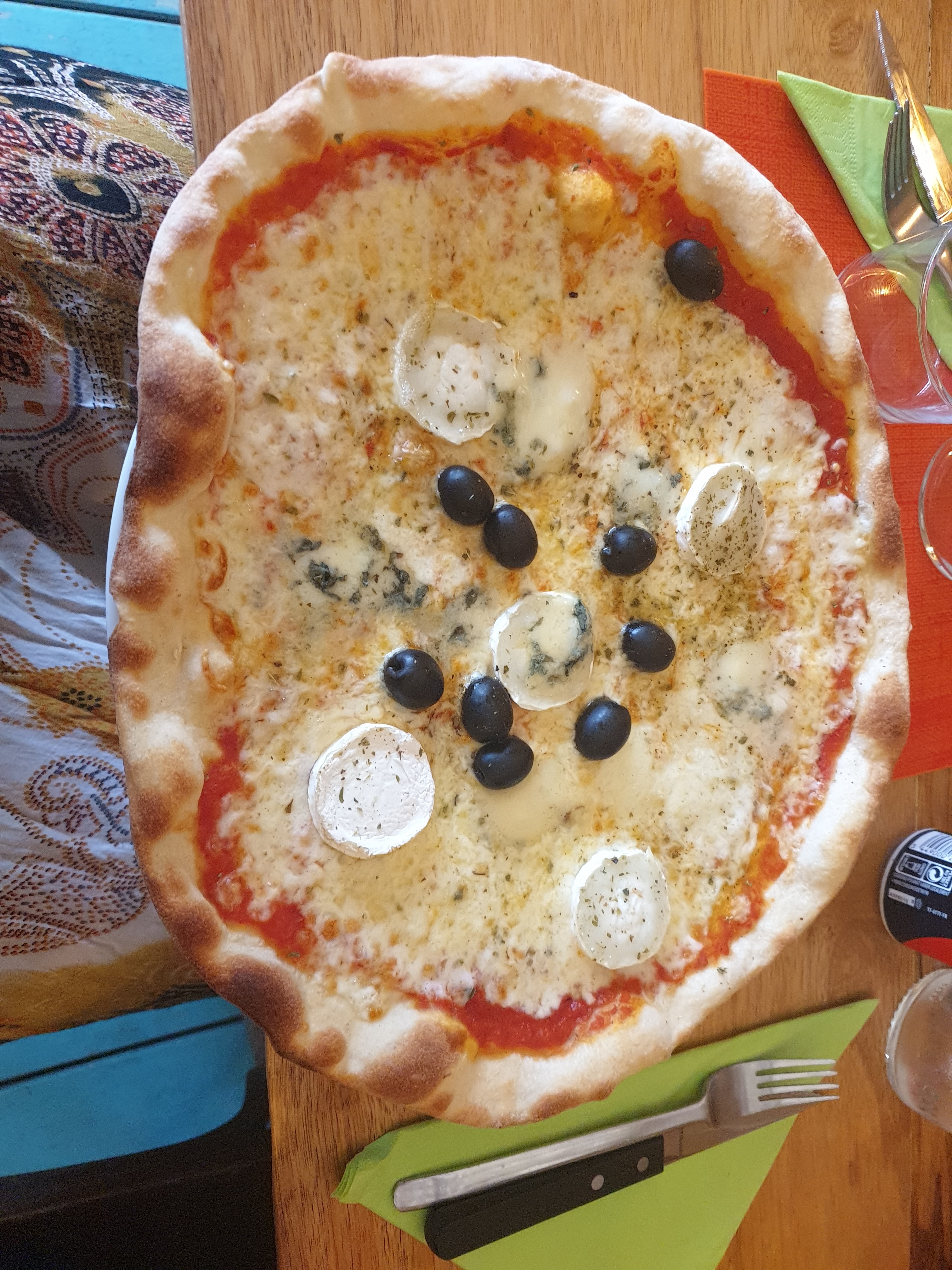 Déco exotique sympa et pizza 4 fromages très bonne. Pâte fine et croustillante!