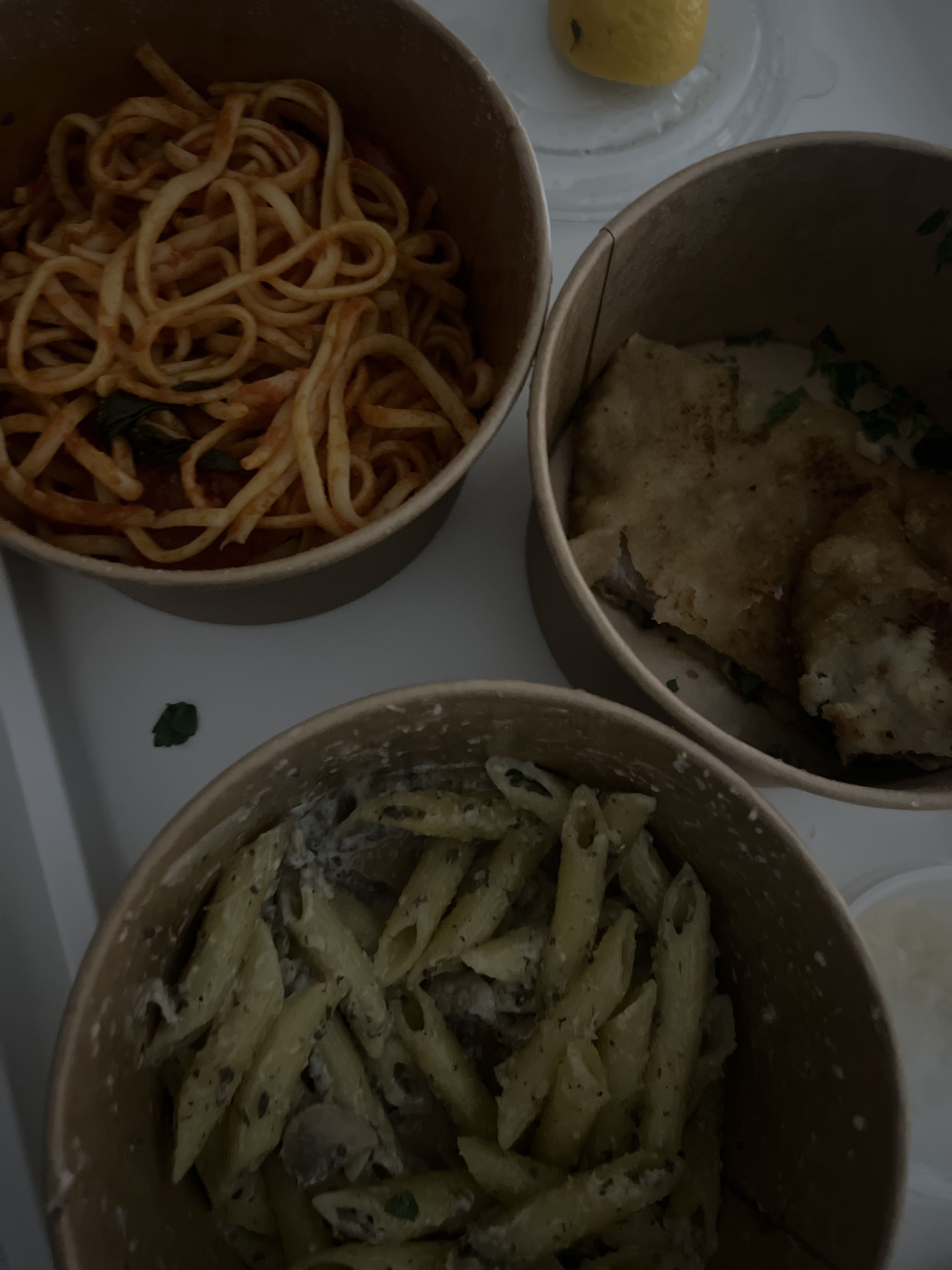 Les pizzas ou les pâtes sont a tomber. Quand c'était sur place c'était encore mieux ! Les serveurs(es) sont vraiment sympa. Bon app !