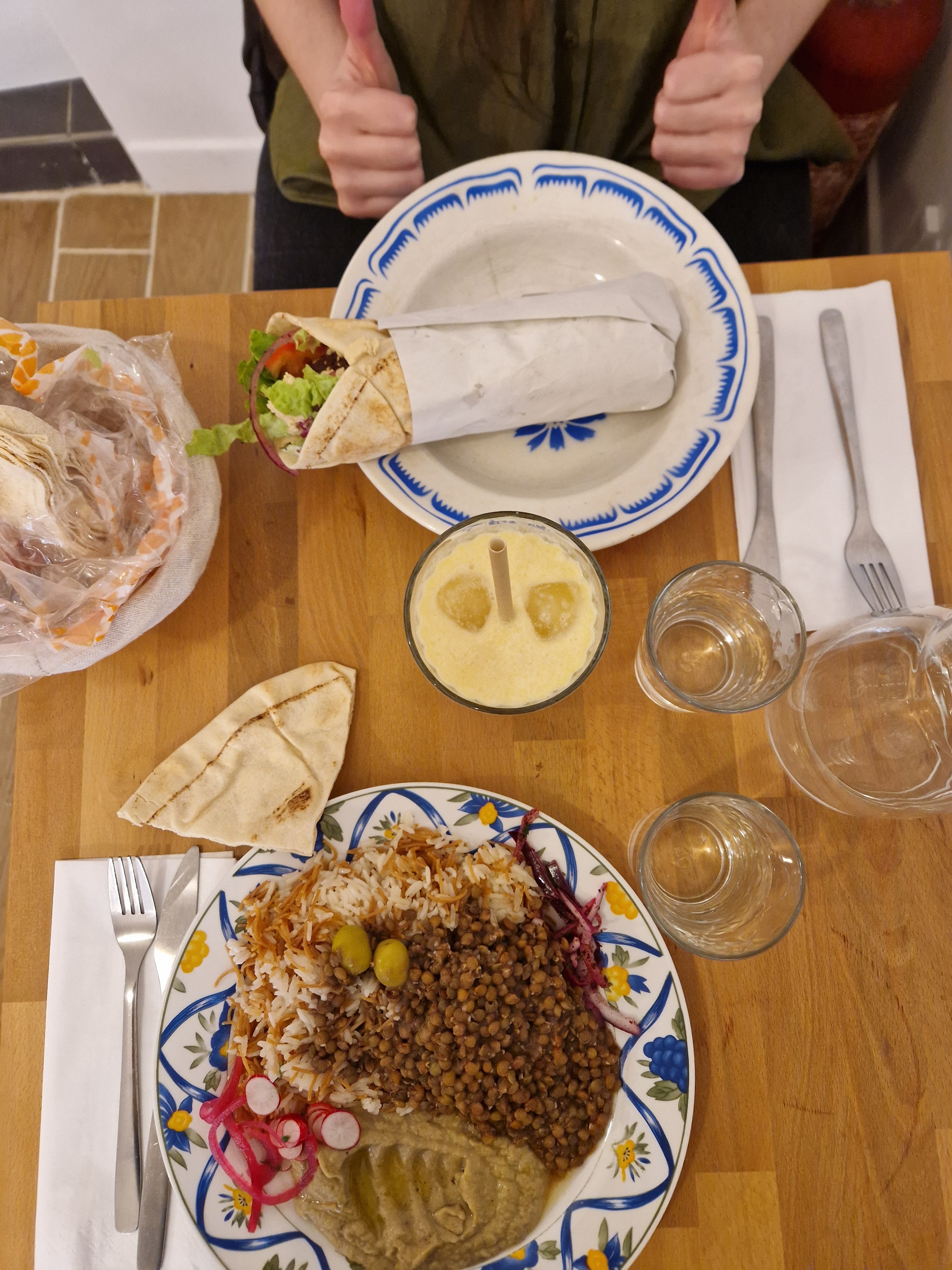Superbe expérience, le repas était super bon, l'ambiance est incroyable, les gérants sont super sympathique, merci pour le repas J'ai pris le plat du jour, du caviar d'aubergine avec du riz libanais et des lentilles, phénoménal, une assiette qui vaut son prix