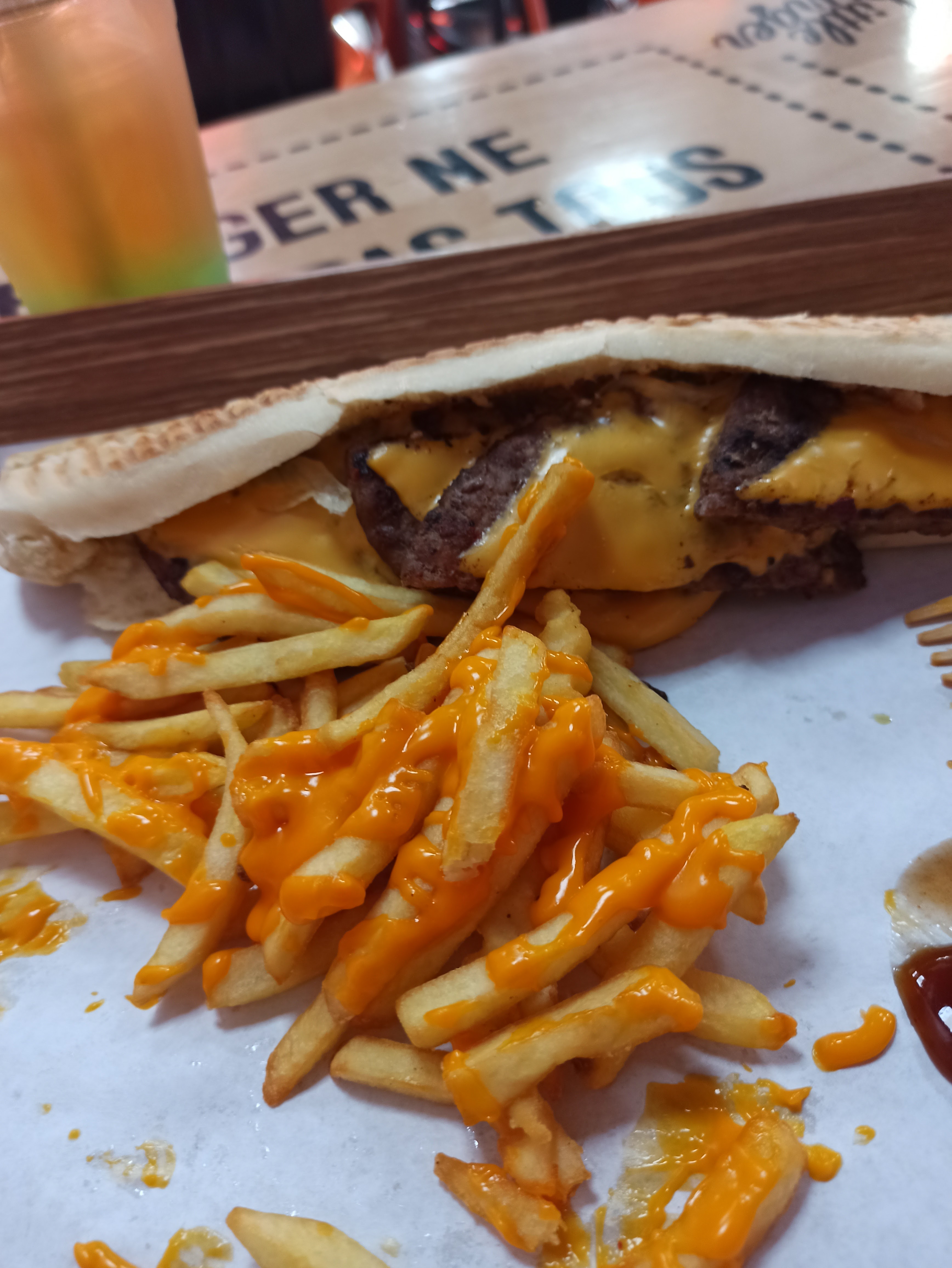 Trop trop bon. Je vous recommande les frites+cheddar+bacon c'est trop doux. Les burgers me font penser à ceux du burger king en gout. Restaurant tres petit, prendre a emporté c'est mieux. Seul bémol, les gars qui fument juste devant, l'odeur pénètre c'est vraiment dérangeant quand on attend nos commandes sinon top.