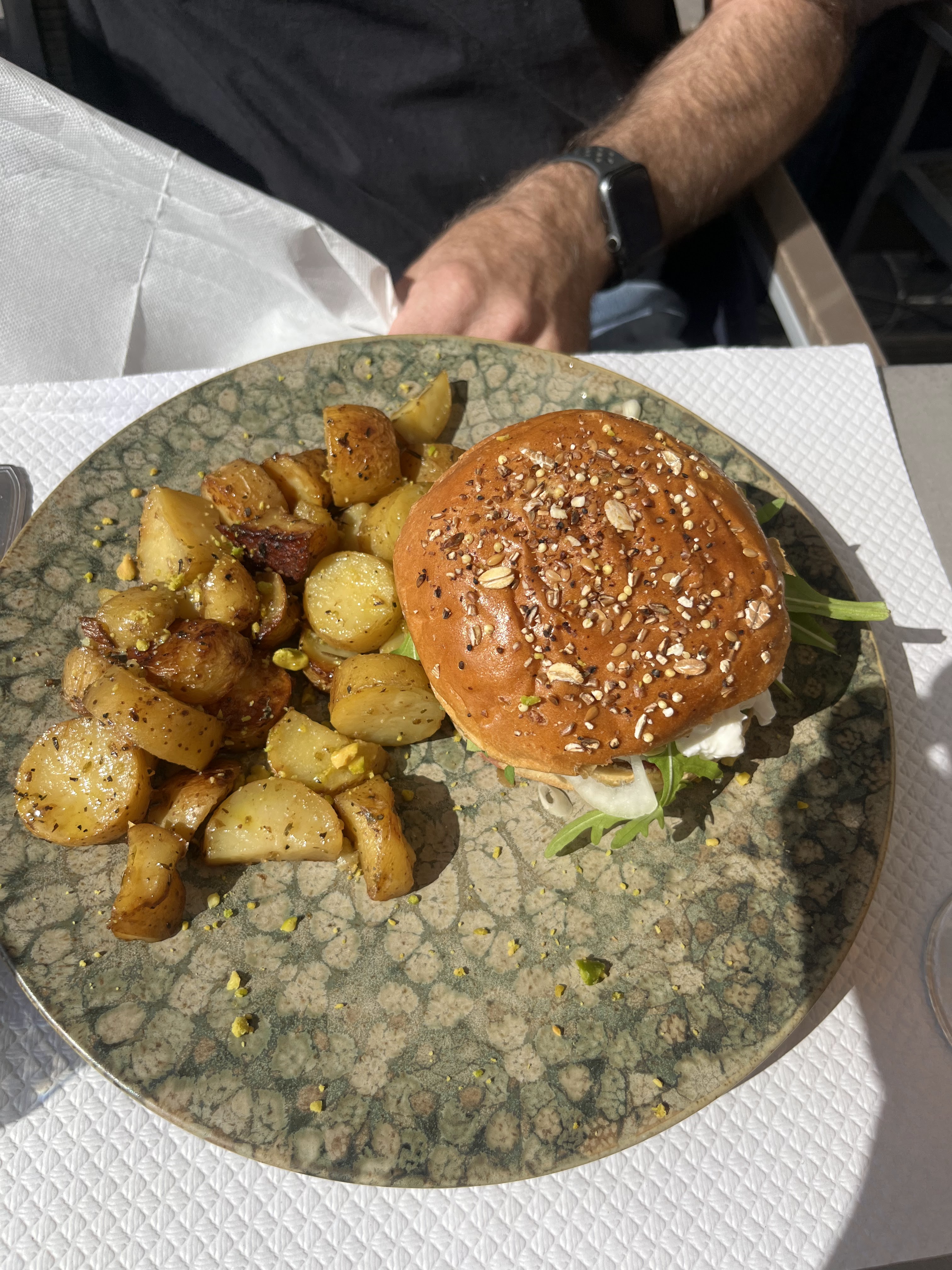 Nous sommes allés déjeuner assis en plein air en mars, c'est superbe. Nous avons le burger de bœuf à l'italienne et la pizza Margarita. La nourriture était bonne.