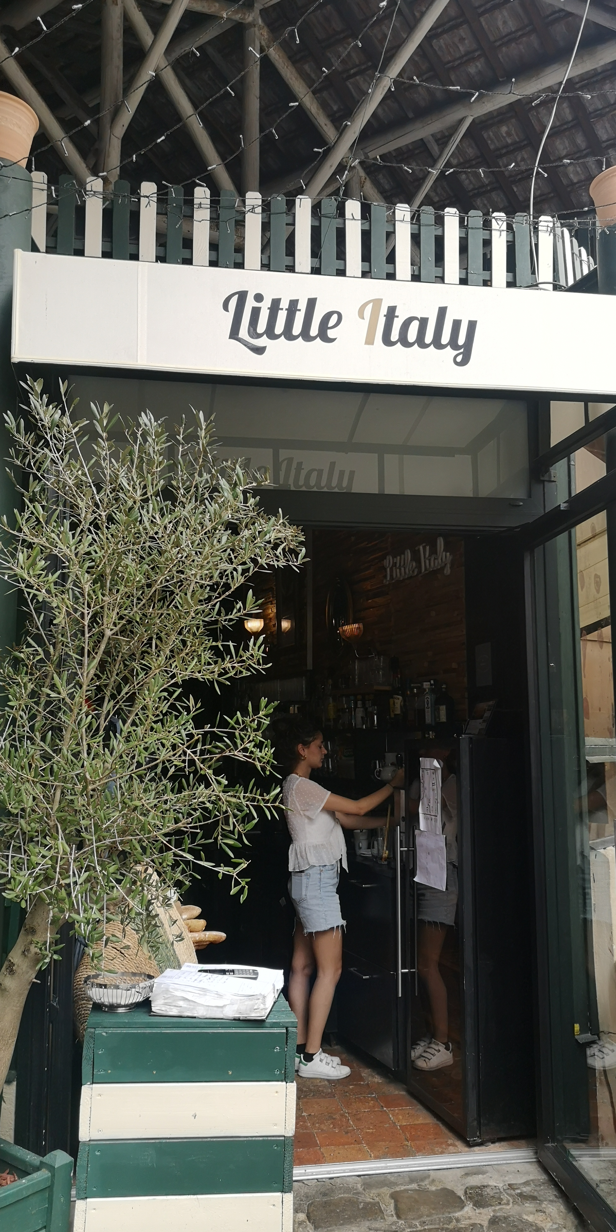 Terrasse calme (rue piétonne) et ensoleillée, personnel accueillant, service rapide, nourriture excellente. Je comprends que Little Italy aient beaucoup d'habitués et qu'il soit préférable de réserver pour la terrasse !