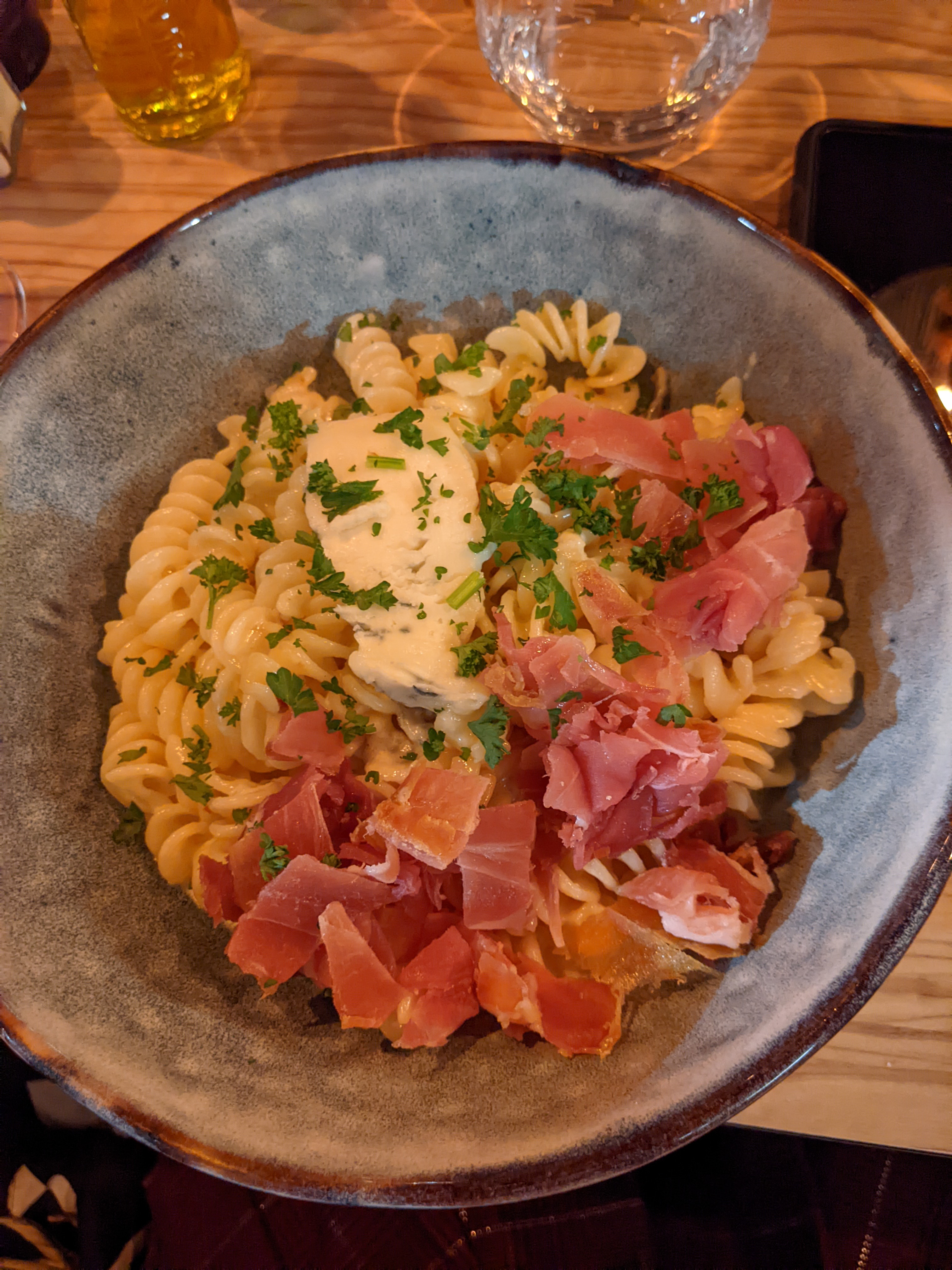 Malgré une réservation, pas de table prête. Nous avons été obligés de manger en terrasse en plein mois d'octobre 🥶 serveuse pas agréable. Plat cher pour des pâtes.