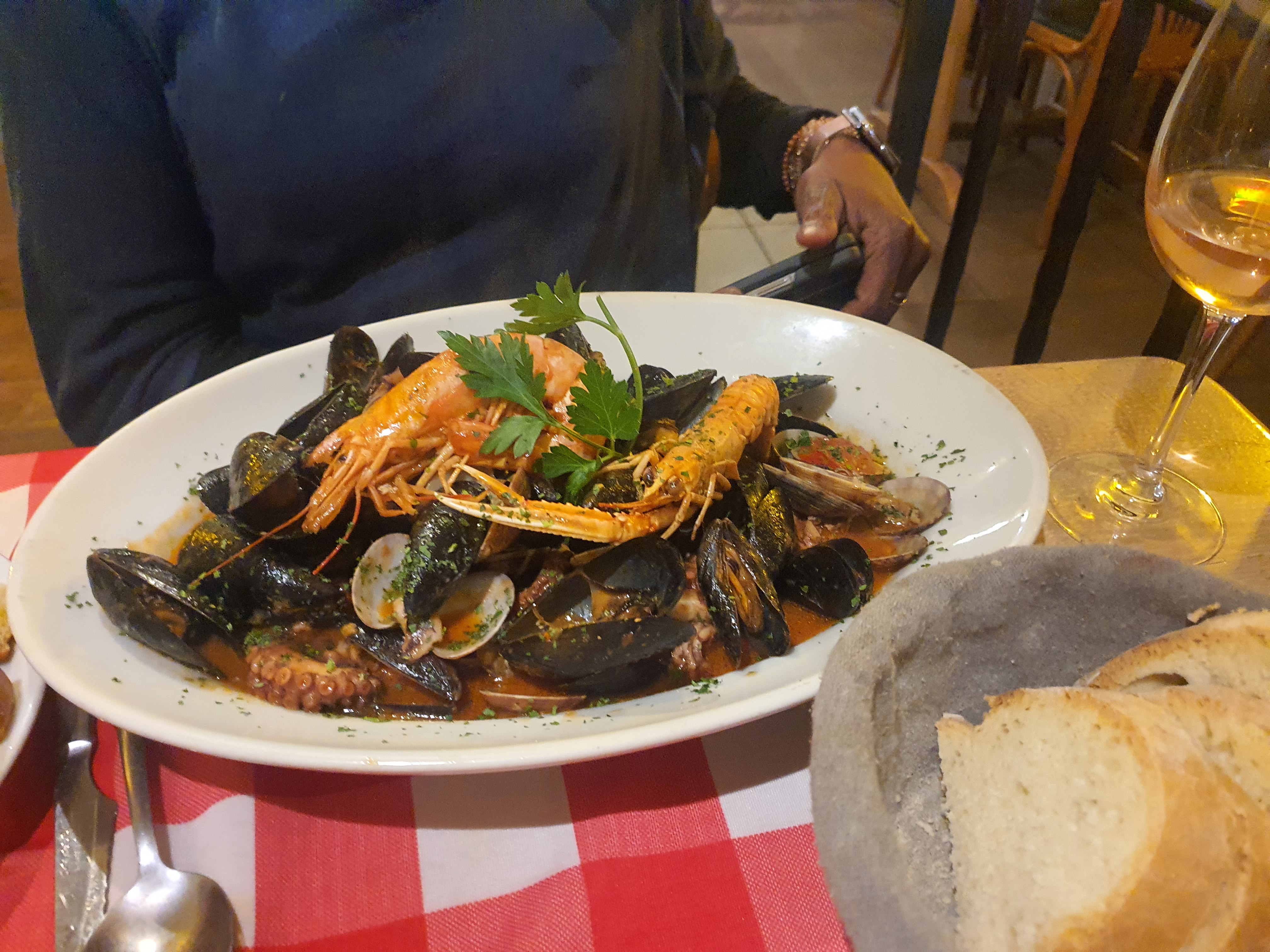 Entre le rosé et les plats copieux, pizzas, nous avons très bien mangé! Le restaurant est beau et les plats délicieux. Je vous recommande les spaghettis du pêcheur et les taglatielles aux langoustines.