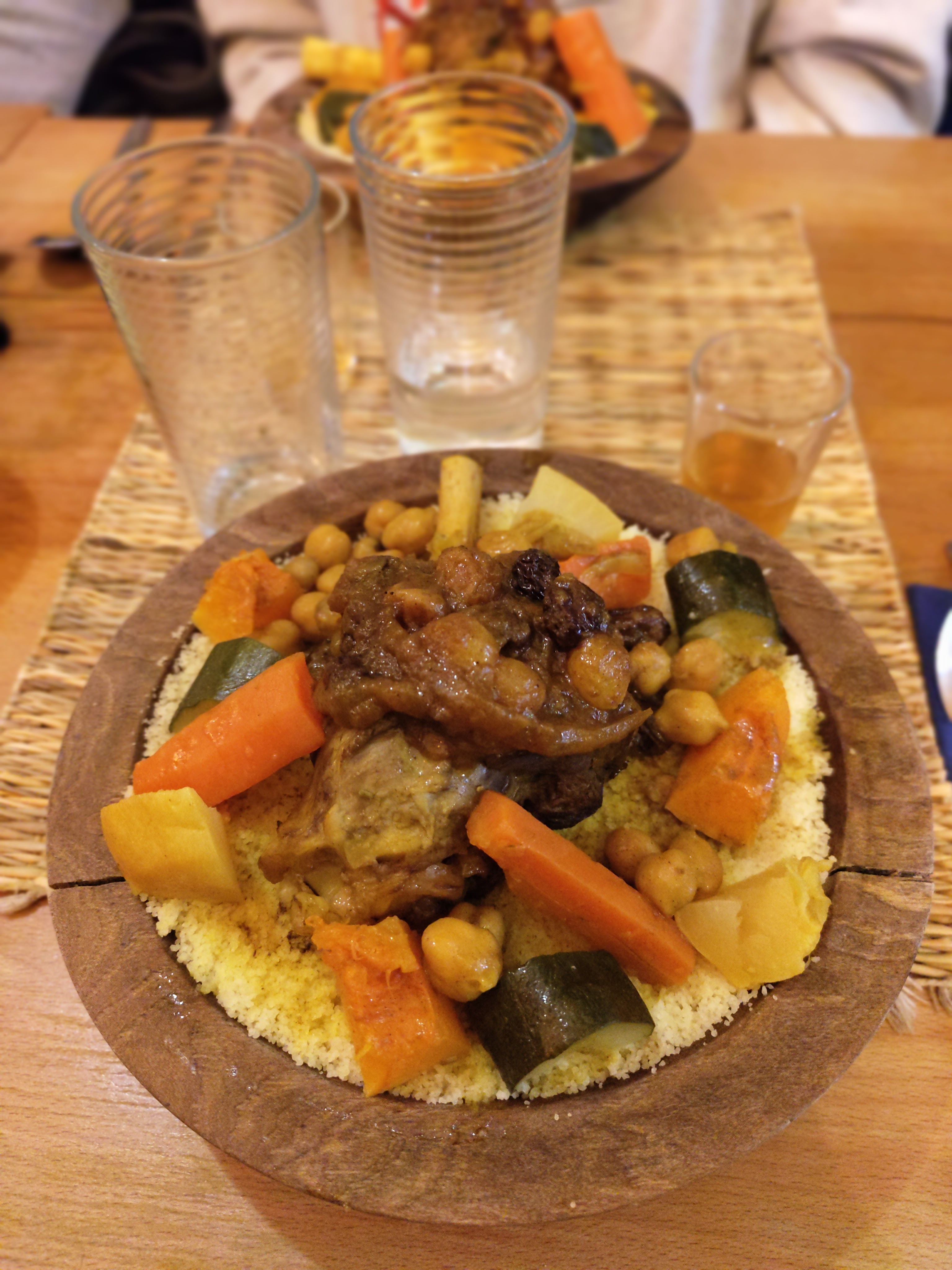 Petit restaurant, à la déco colorée et chaleureuse. J’ai beaucoup aimé mon couscous (qui était en outre assez copieux). En revanche, mes amies ont trouvé leur plat (tajine et pastilla) trop sucré et ont eu du mal à aller jusqu’au bout de leur assiette pour cette raison. J'ai pris quelques bouchées de leur plat et j'aurais également eu du mal avec autant de sucre.