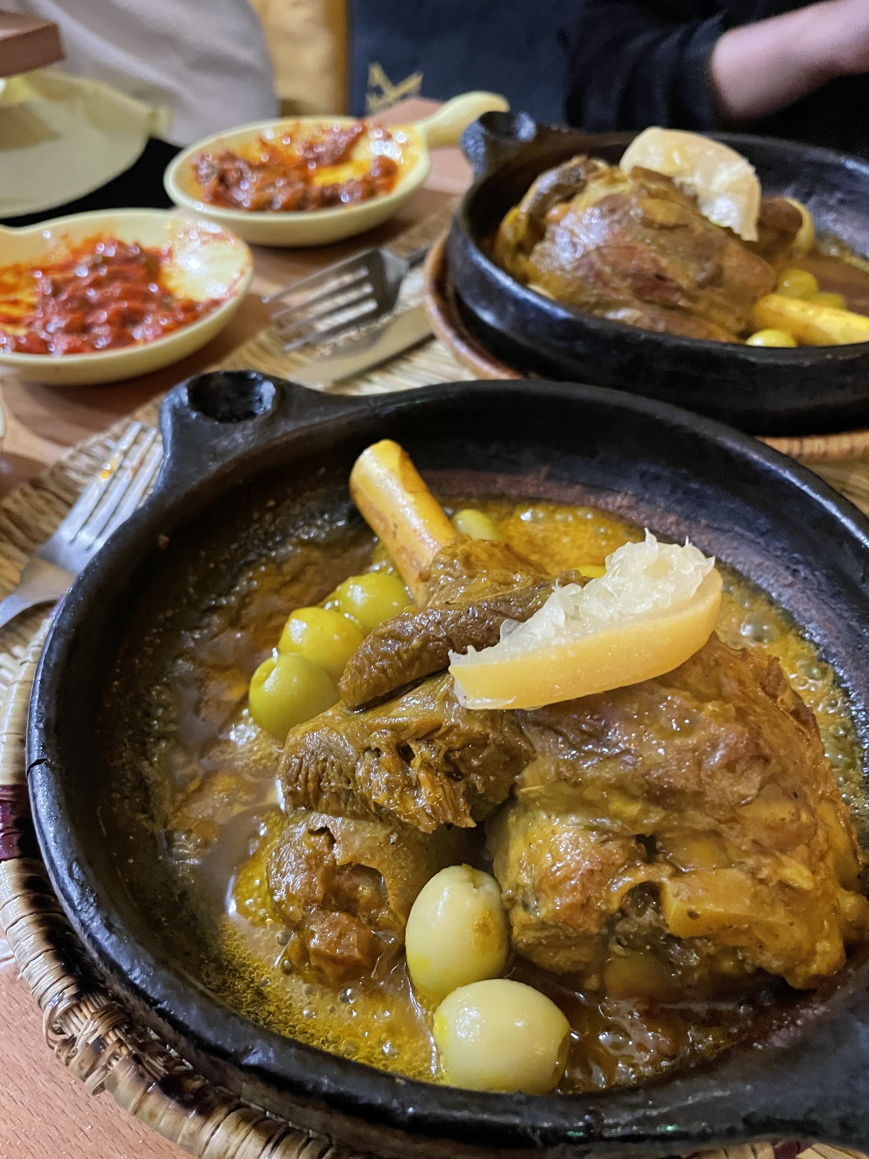 Première fois que je teste ce restaurant, en compagnie de mon époux. Les plats sont un peu gras, ça baigne dans de l'huile. J'ai pris du poulet aux olives. Déçue de voir que des olives vertes dénoyautées ont été ajoutées juste pour la décoration à la fin de la cuisson. On ne sent pas le goût du citron confit non plus. En résumé, ça manque de saveur, j'ai goûté mieux ailleurs. Une chose est sûre, je ne reviendrai pas.