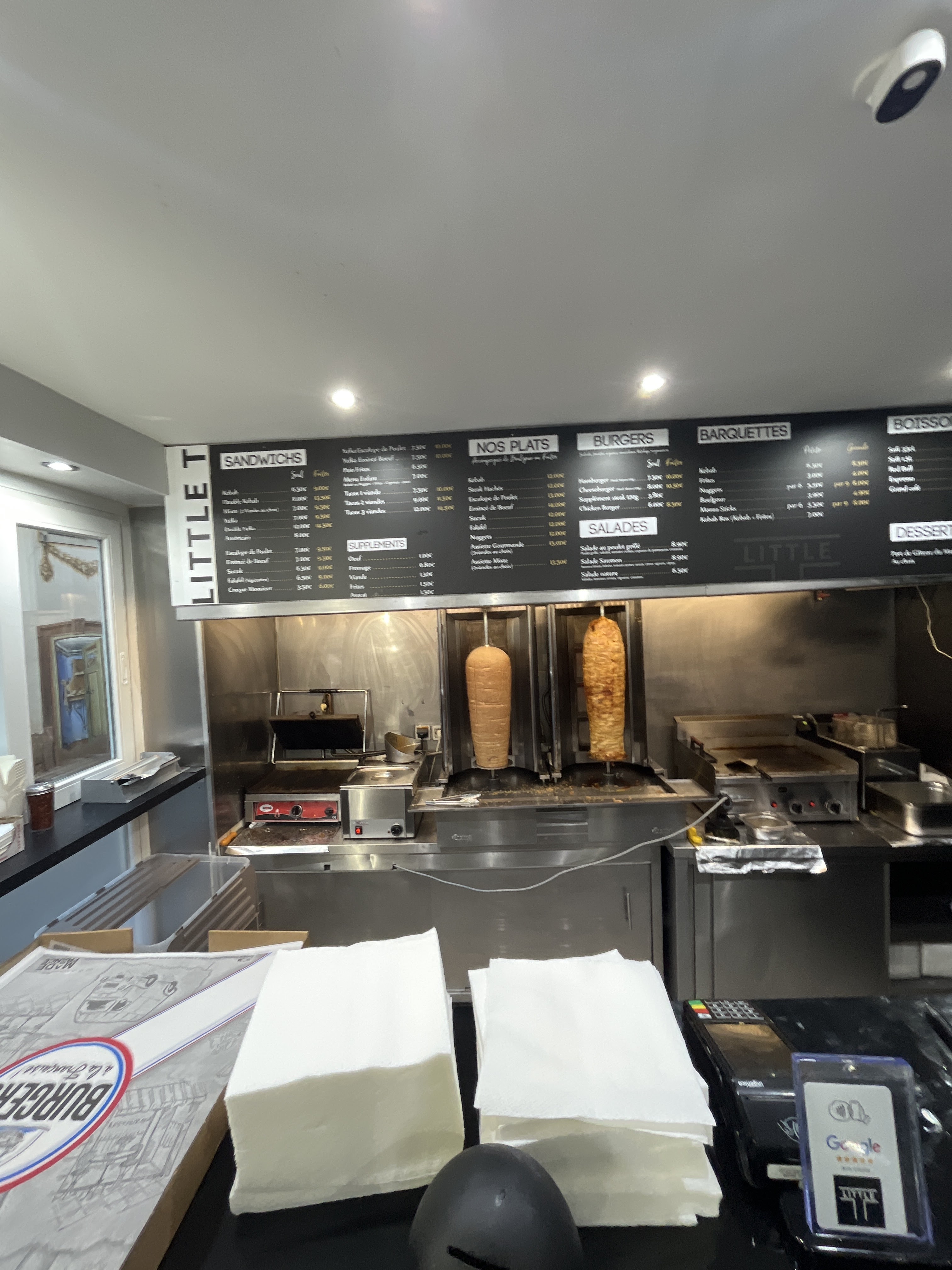 Je revois ma note à la baisse. Nous sommes à chaque nouvelle commande un peu plus déçus. Erreurs et oublis 1 fois sur 2. Les oignons et la salade sont coupés beaucoup trop gros, très désagréable. La quantité de viande est vraiment faible. Jusqu'ici je m'abstenais de baisser la note (c'est important de soutenir les restaurateurs) jusqu'au weekend dernier où 5/10 minutes après avoir fini mon yufka j'ai été prise de crampes au ventre, et vomissement. Idem pour mon conjoint inconfort intestinale pendant plusieurs jours (peut être une simple coïncidence). Nous ne sommes pas sûr d'y retourner, quitte à faire un peu de route pour trouver mieux. (Ancien Avis : Nous l'attendions ! Après dès semaines de fermeture et un jolie lifting, c'est un snack tout neuf. La naissance d'un jolie bébé du nom de Little T ! Victime de son succès c'est quelques fois difficile : erreur de commande, délai d'attente, ... Le patron est serviable et le personnel est sympathique malgré que pris dans le jus ils en oublient parfois leur sourire. Concernant le plus important , la victuaille : c'est simple, c'est bon . Leurs émincés maison boeuf comme poulet sont très bien assaisonner, tellement bon que je regrette qu'il n'y en ai pas plus dans les sandwichs. Les 2 seuls hics que j'ai pu rencontrer se sont : les erreurs d'hygiène (utiliser le même gant pour rendre la monnaie que pour disposer les ingrédients dans les sandwichs).)