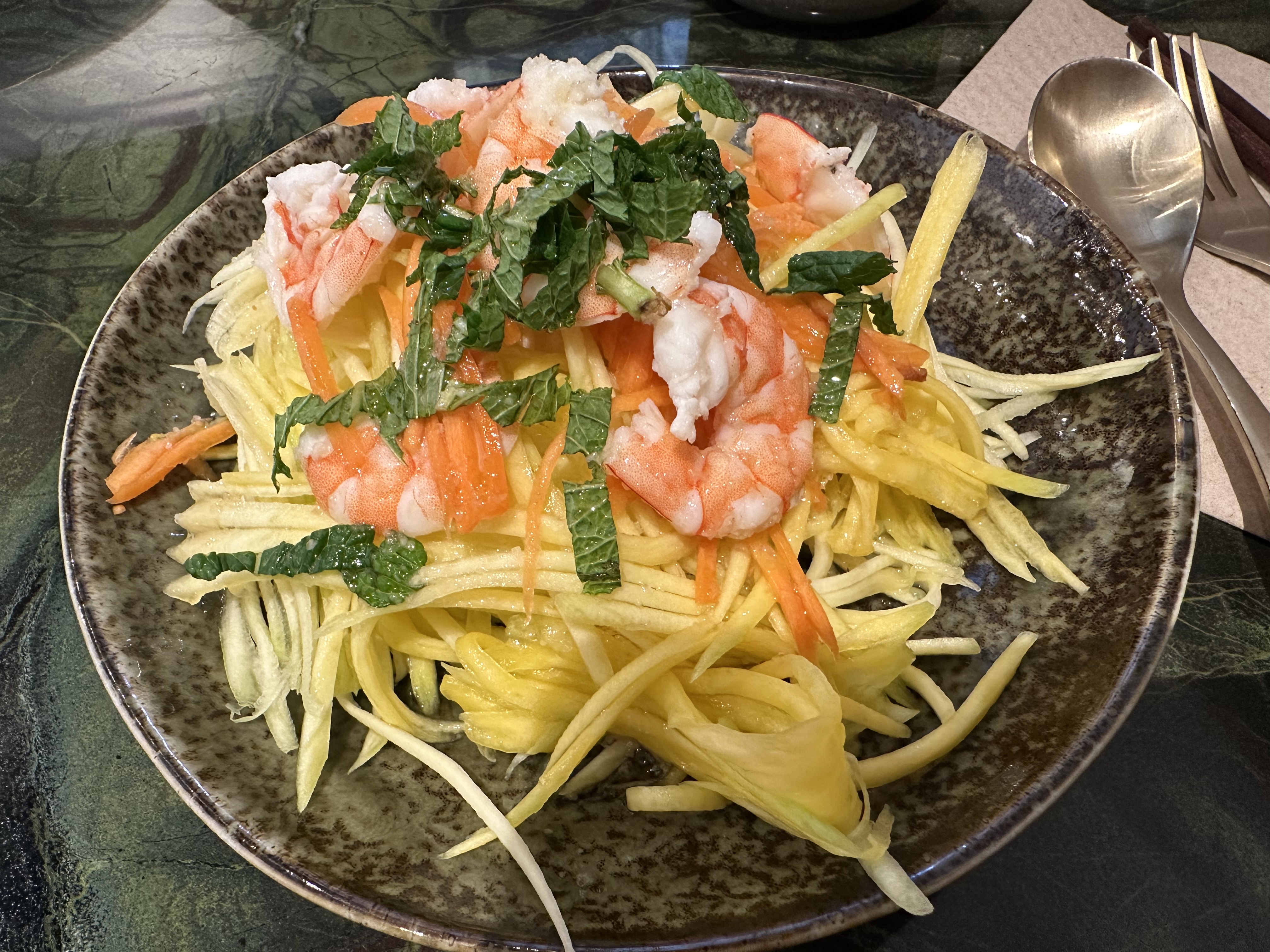 J'ai vraiment adoré le crabe mou en beignet et le bún chả servis avec de la mangue verte (tellement rare )