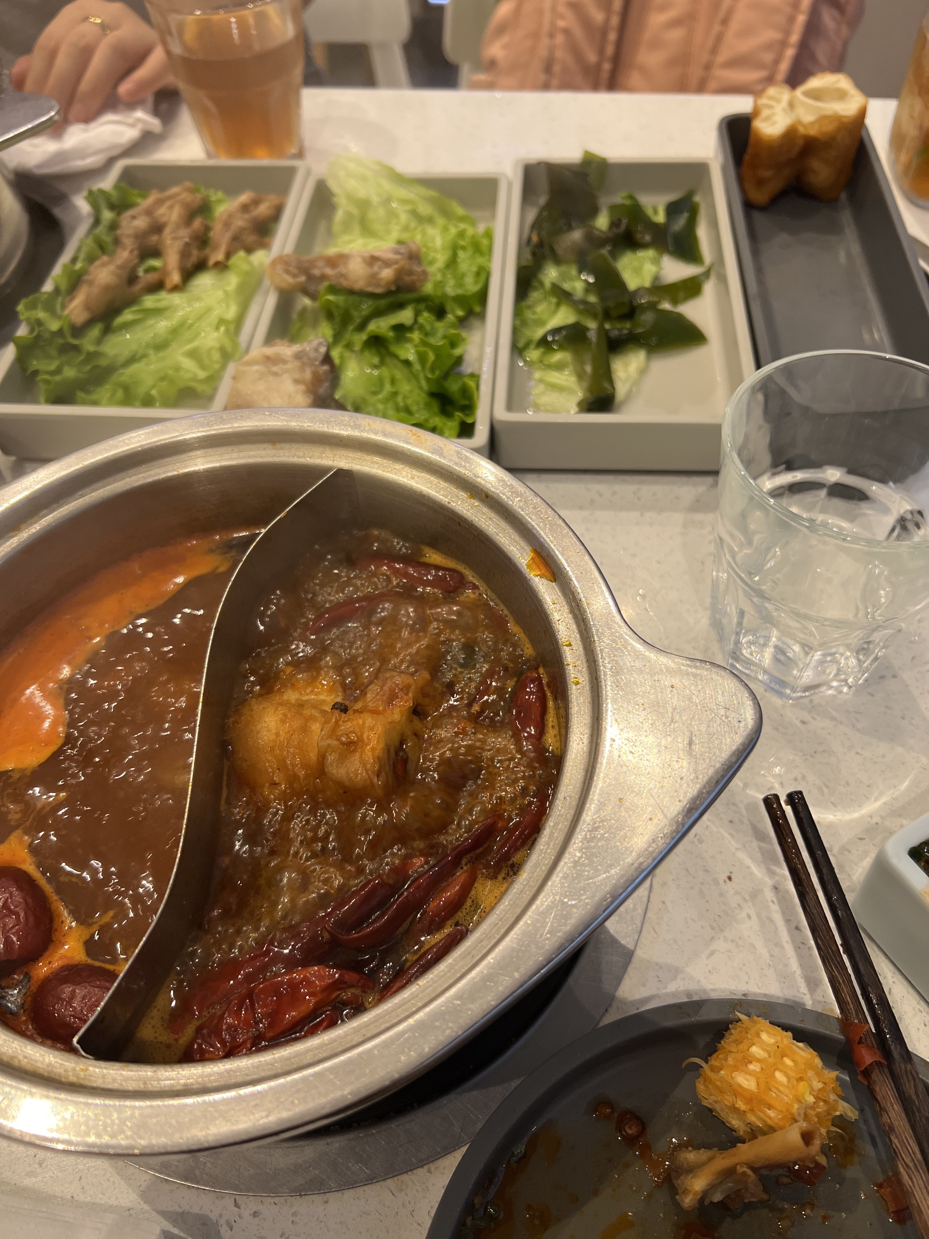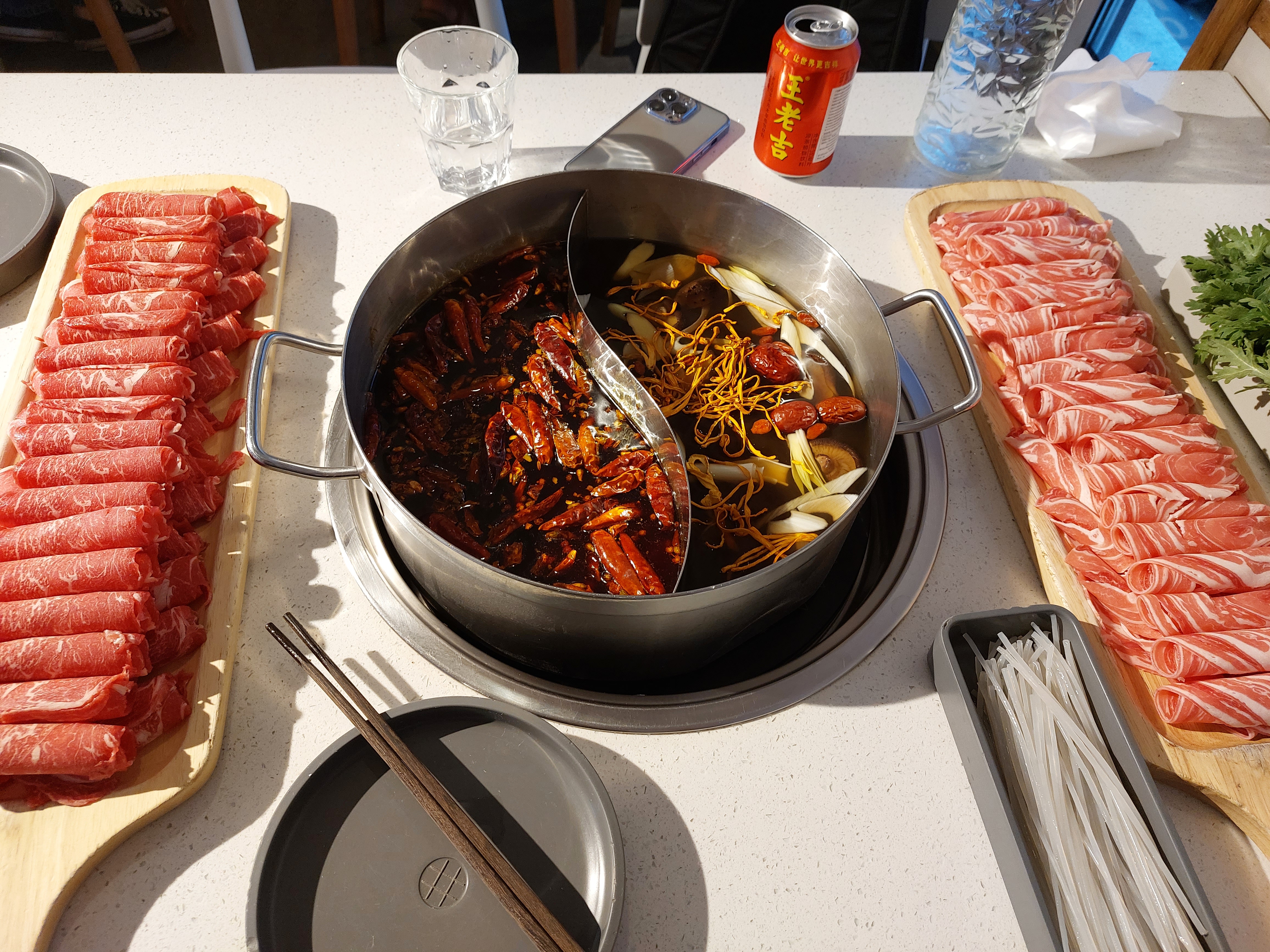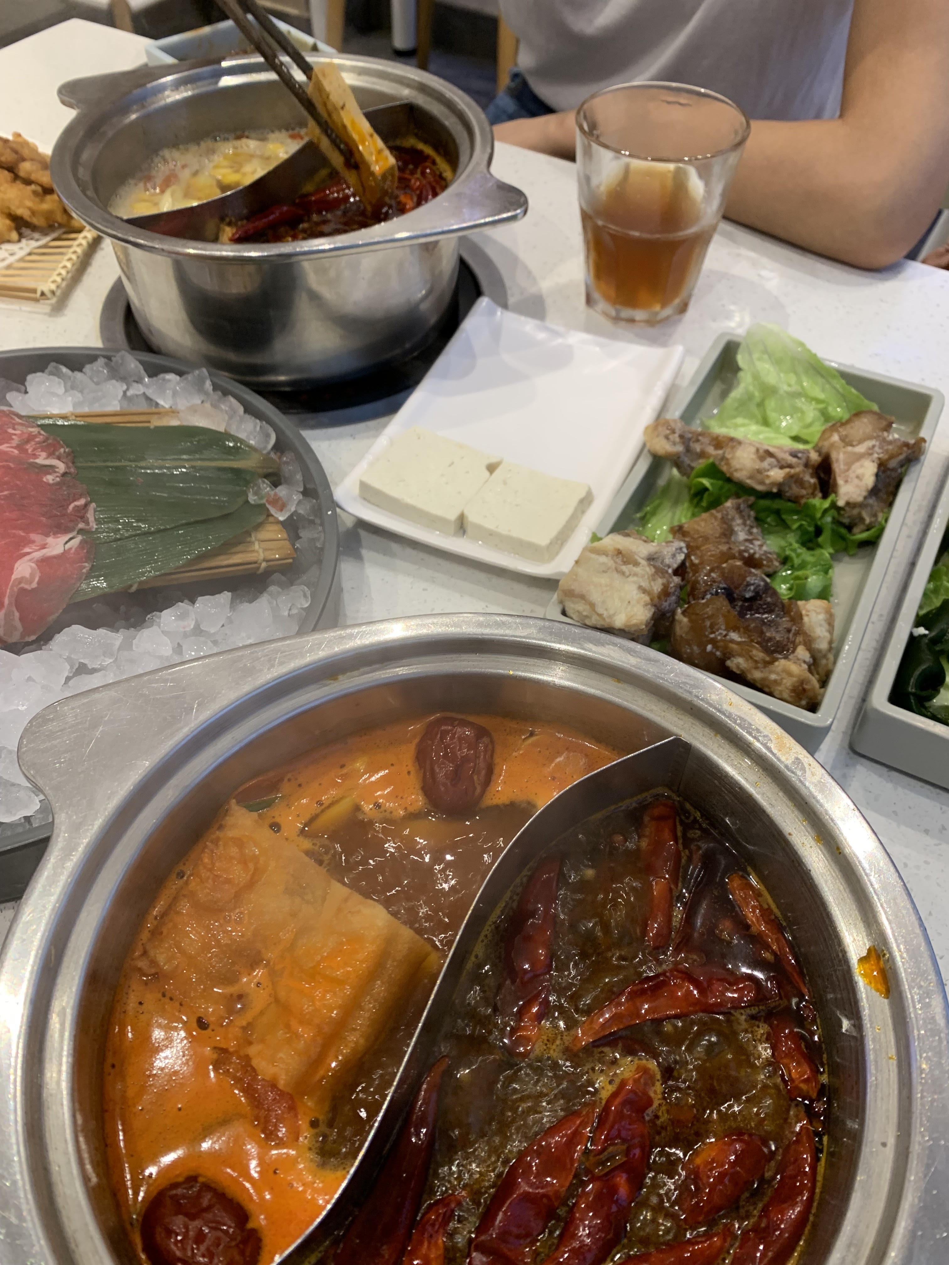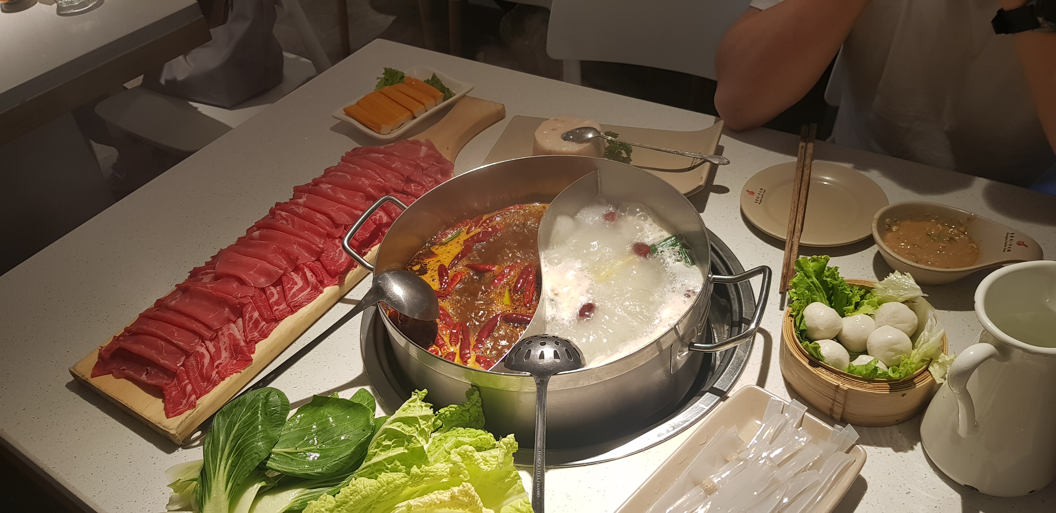 Un superbe pot chaud chinois. Vérifié authentique par mon ami chinois. Rentable également. 20€/personne pour une belle tartinade de viandes et légumes. Étant amateur d’épices, j’ai opté pour le bouillon épicé. Et c'était merveilleux. A essayer avec de la pâte de tripes et de crevettes et de la tige de lotus.