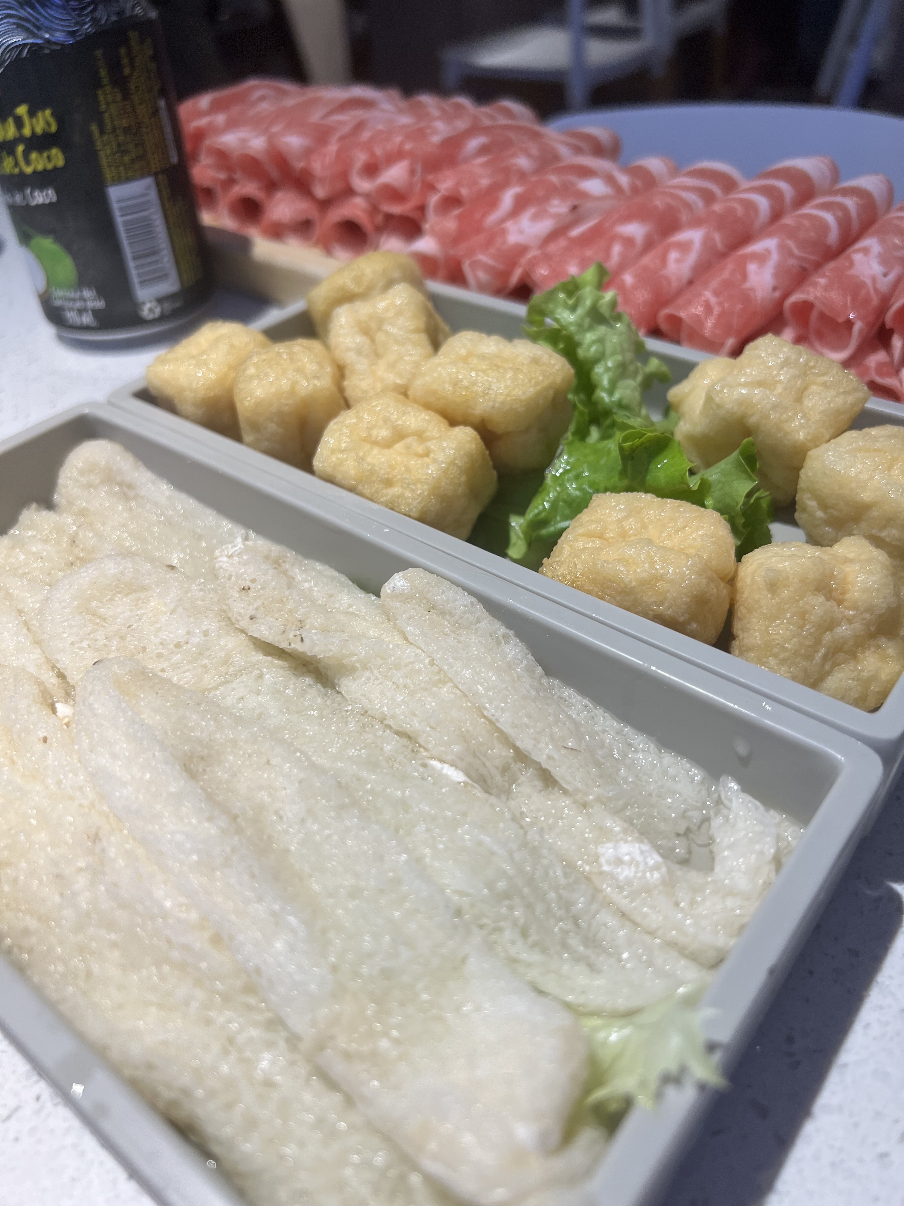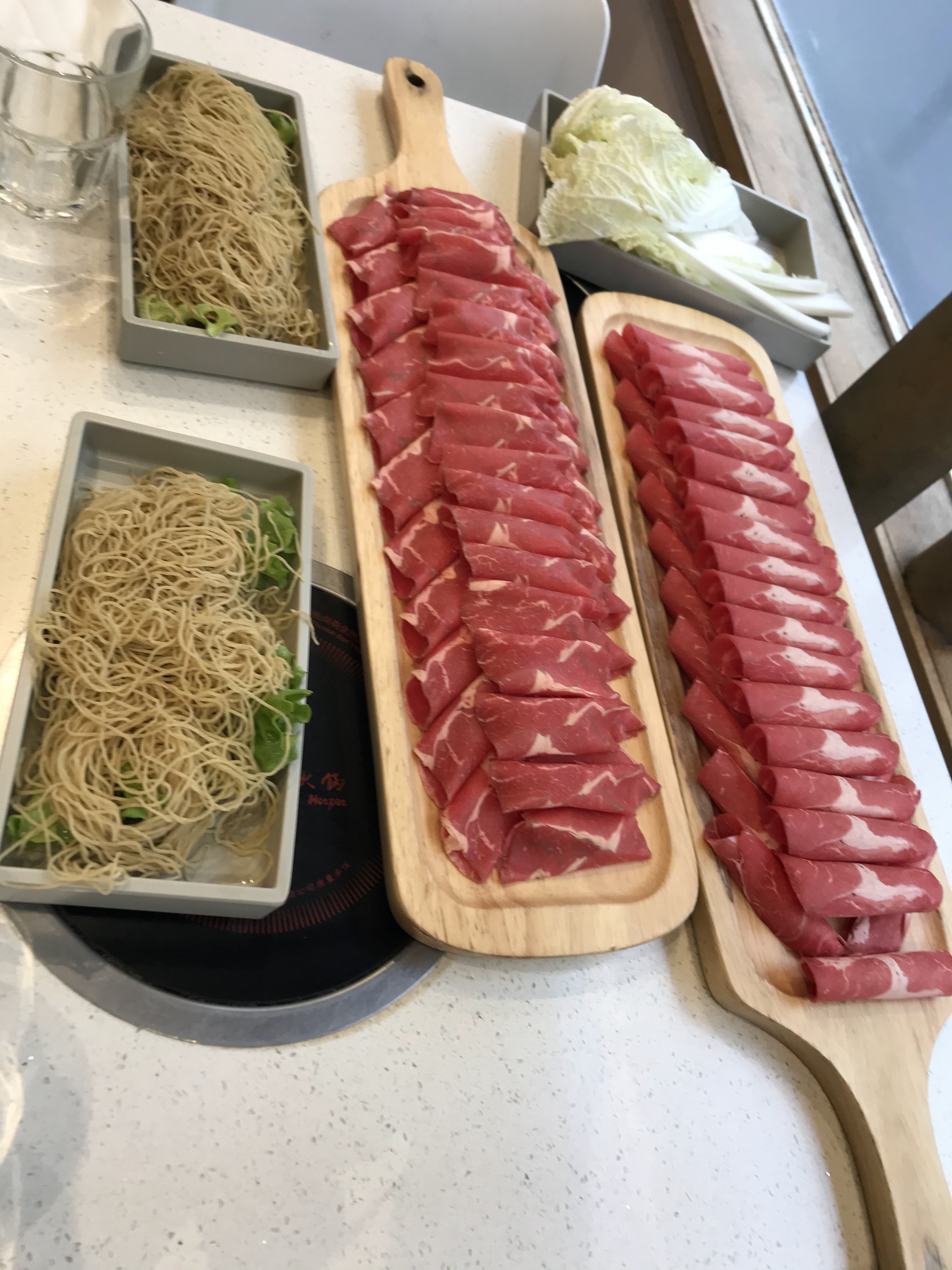 Pour un hotpot, c'était plutôt correct. Le prix reste assez raisonnable pour la quantité servis. Pour les viandes, j'étais assez impressionnée par la quantité car il y en avait vraiment beaucoup...! Assez déçue par le service, on a reçu nos viandes et poisson mais ils ont oublié tout le reste, on a dû attendre 15min avant d'aller réclamer et être servis. Le but d'un hotpot c'est de tout avoir sur la table et mettre plein d'aliment dans son bouillon... Et même l'addition, y'a eu erreur... On a réglé la table d'à côté et on a été interpellé dans la rue...!