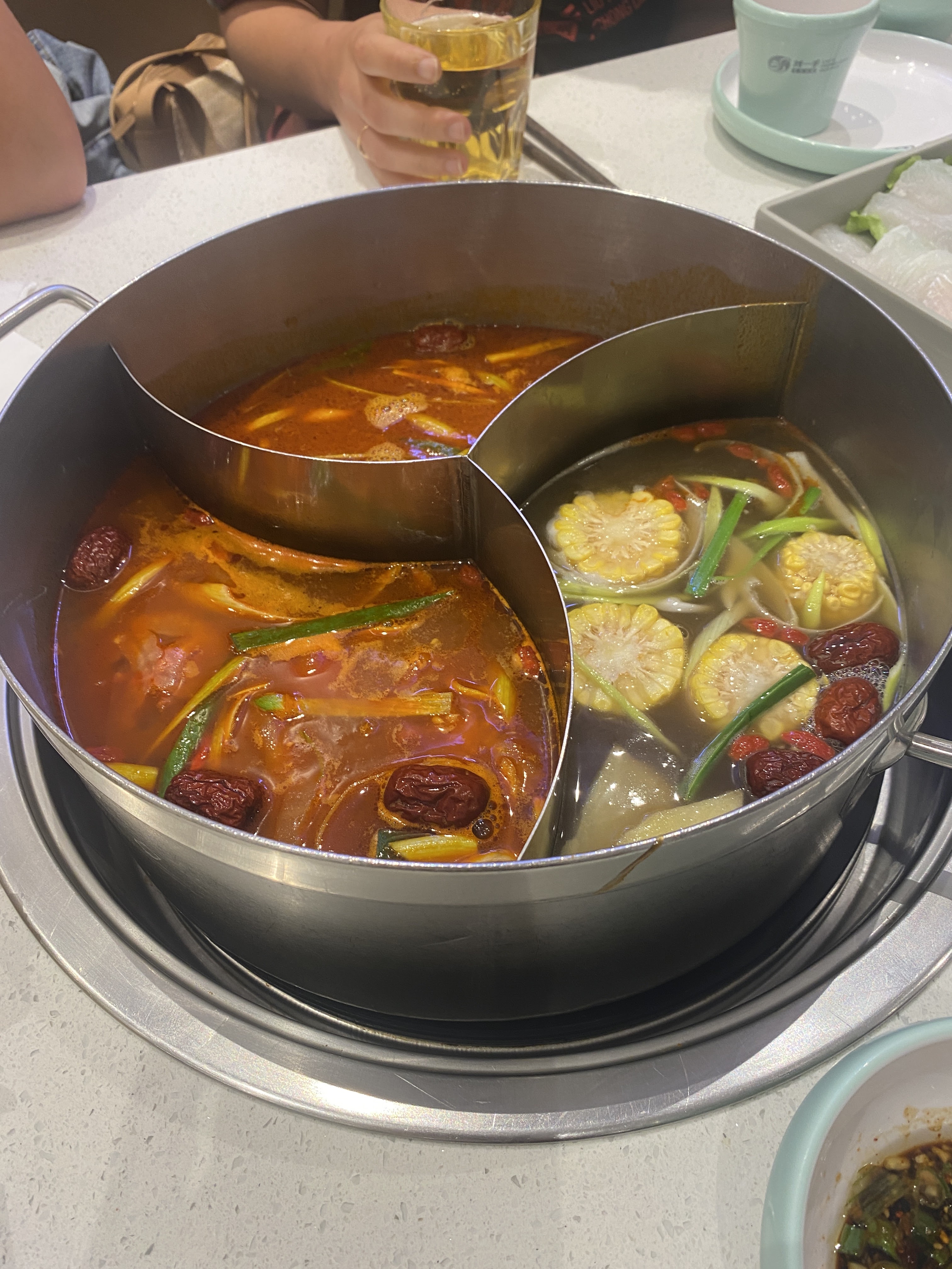 Accueil simple mais agréable. Le choix de nourriture est très agréable, la carte nous donne envie de goûter à énormément de choses. Le prix est correct pour ce qu'ils proposent (on ne trouve pas de HotPot partout). Je vous conseille le bouillon au maïs et d'arriver en avance ou de réserver.