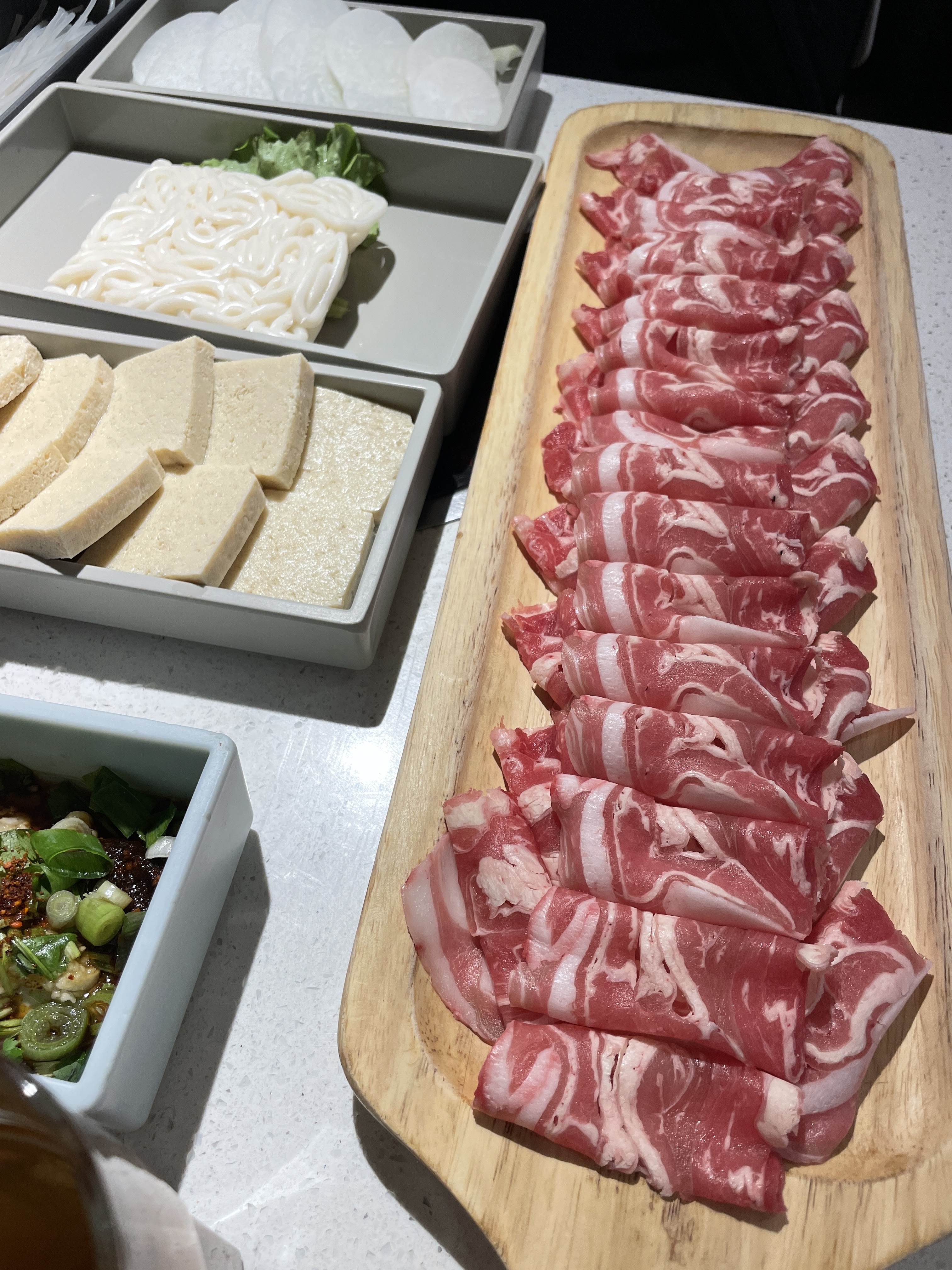 Le choix des ingredients, la qualité, le service sont excellents. Hotpot exactement comme en Chine. Si vous prenez le bouillon épicé et que vous ne connaissez pas...prenez le moins épicé - et vous pourrez toujours demander a diluer...