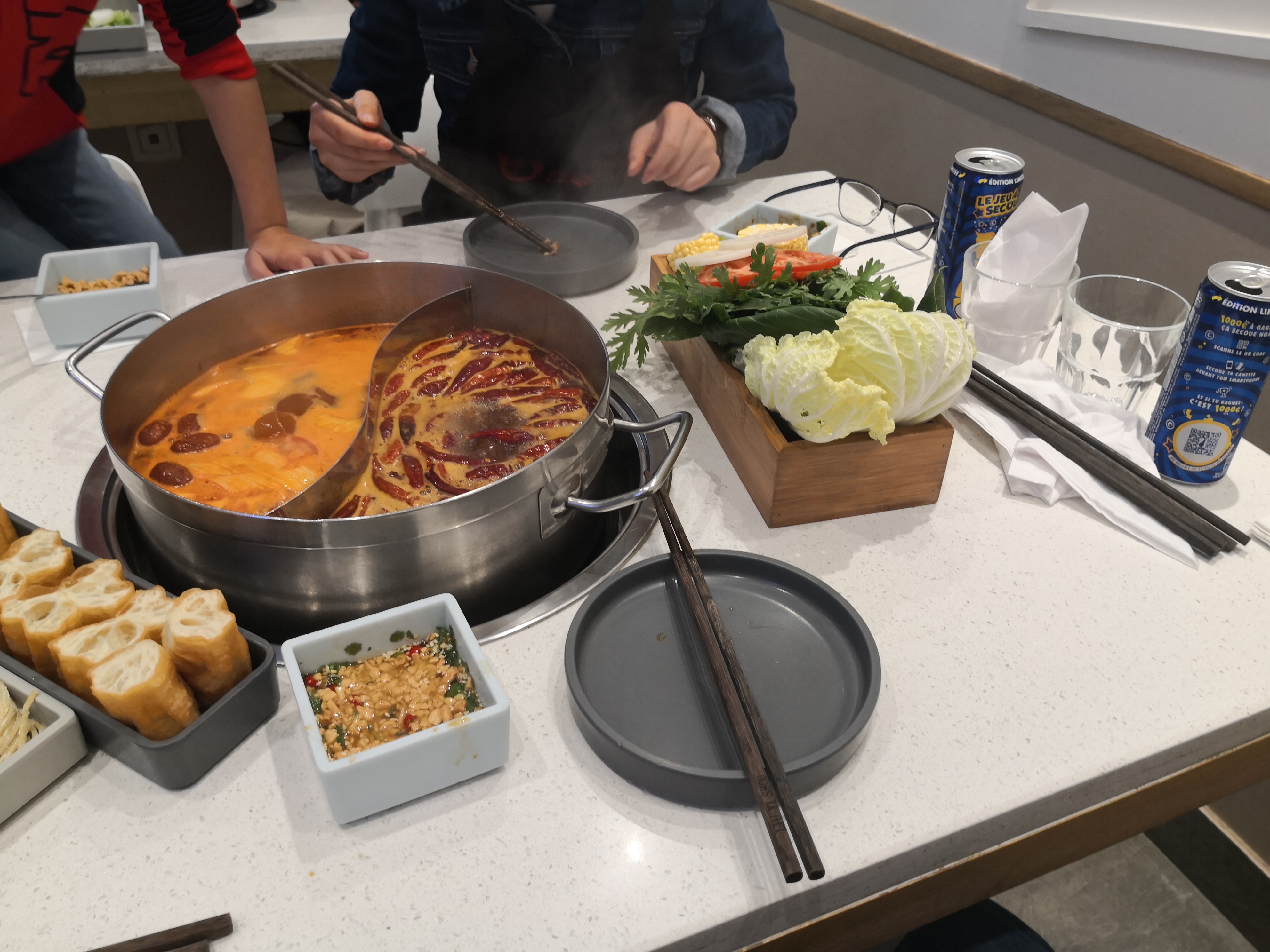 Bon Hotpot sichuanais ! On a un choix varié de sauce, de bouillon et d'assortiments... Service rapide et efficace, il y a même un système d'aération. Par contre, on a le choix d'ajouter du glutamate 🙄