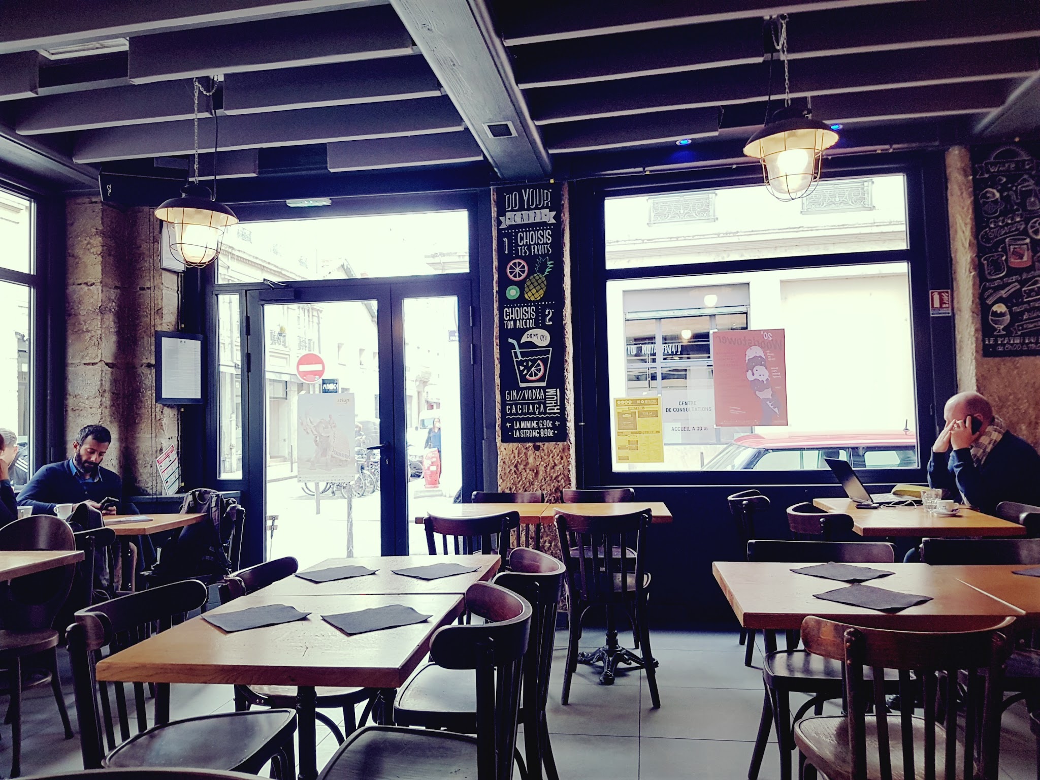 C'est un peu ma maison à chacun de mes passages à Lyon, l'endroit où j'ai envie d'aller tous les jours juste pour l'accueil. Que ce soit pour un café et cookie le matin, pour un repas le midi (menu changeant selon les saisons et disponibilité du marché, ce qui est capital pour moi) avec toujours une option végétarienne, ou pour une planche/burger/gratin le soir avec des amies et quelques bières ou une caïpi. Sincèrement, c'est un endroit pour tous ou chacun y trouve son compte, avec enfants (mais sans c'est mieux, on va pas se mentir), avec ta mère, avec tes potes, avec un date.