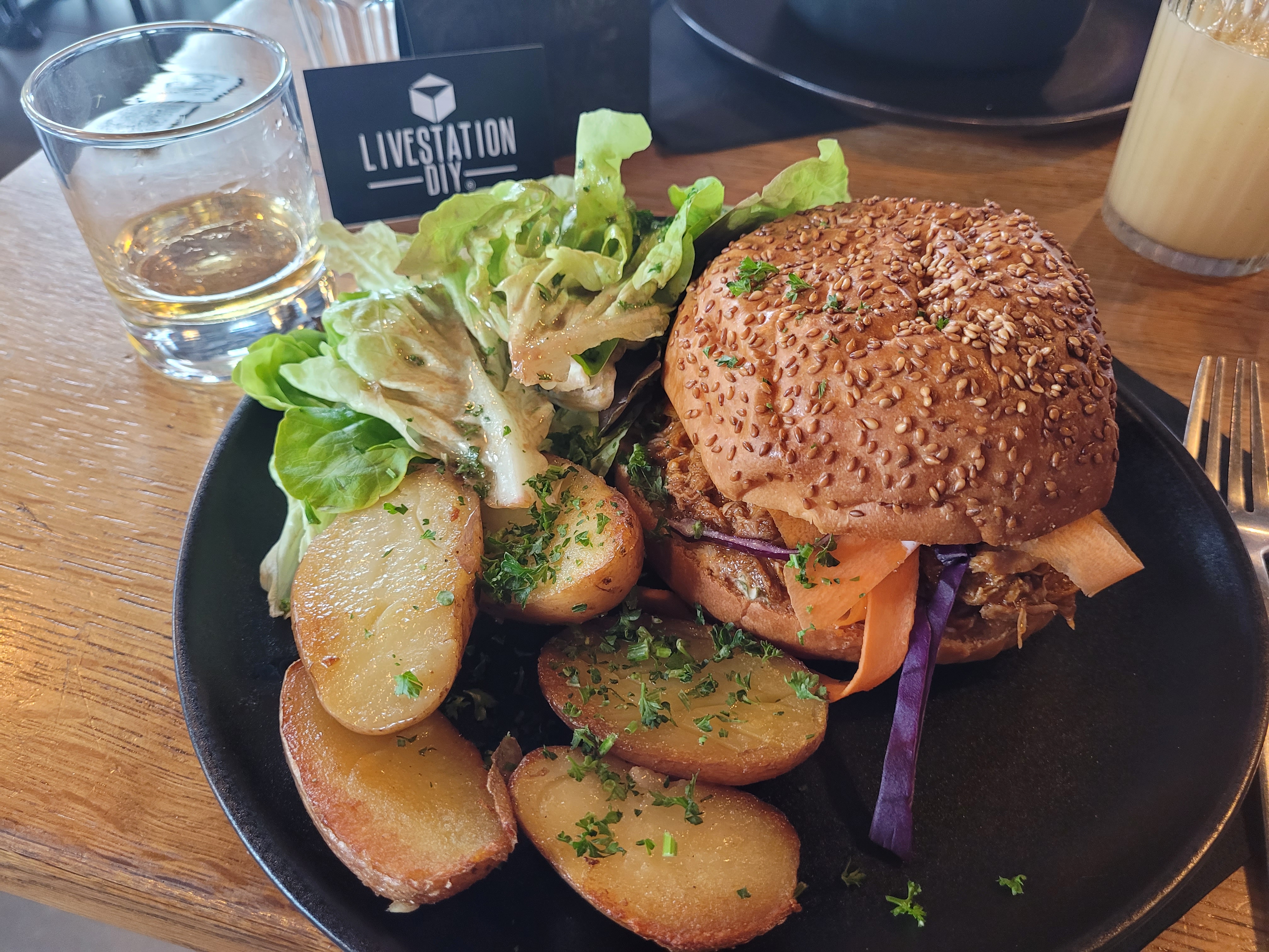 Ambiance industrielle, brunch avec un bon rapport qualité prix (option végé pour le plat du jour et le brunch. Léger bémol pour le fromage qui remplace la charcuterie car un plateau de fromage était déjà prévu au buffet, donc une autre option pour accompagner le Houmous aurait été intéressante). 22€ le brunch sans alcool/boisson fraîche, 25€ avec. Grande table possible.