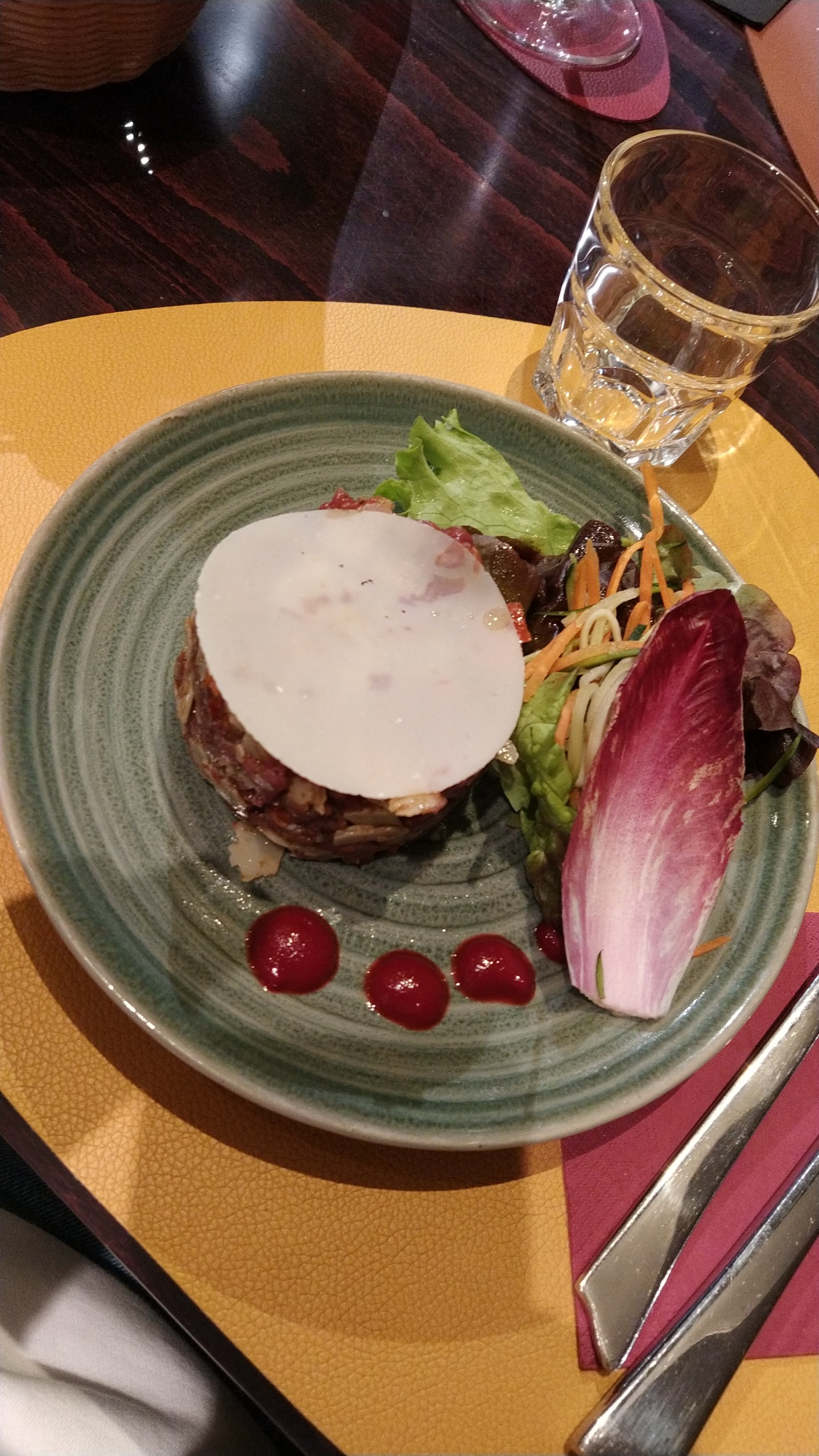 Ensemble du repas délicieux de l entrée au dessert je recommande sans hesiter