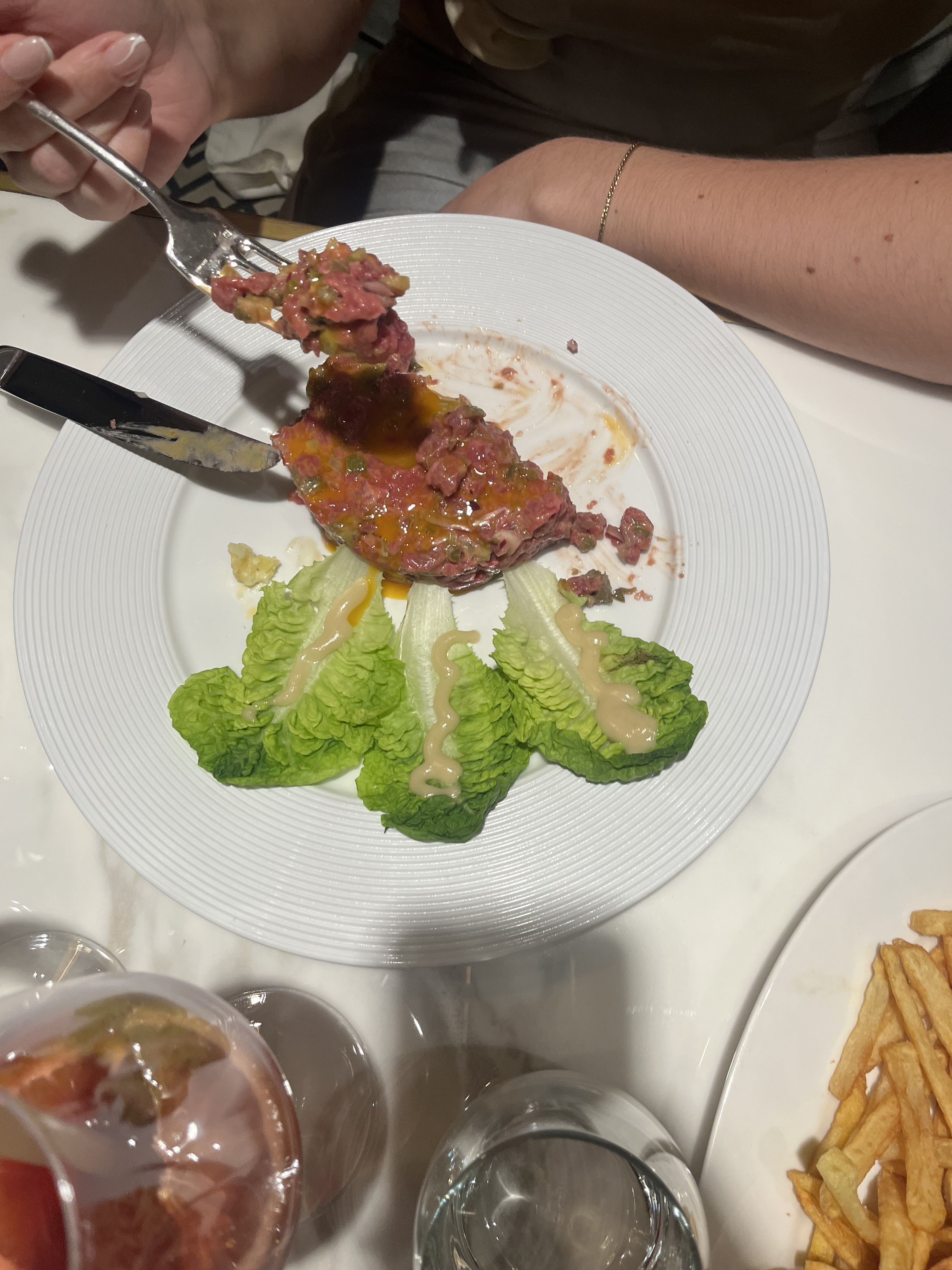 Grosse déception par rapport à il y a deux ans : frites industrielles, 24€ le tartare de bœuf à la présentation de cafétaria d'autoroute avec sucrines à la vinaigrette industrielle, mayonnaise industrielle, frites industrielles. Heureusement la viande était bonne, ça sauve le plat. Filet de truite trop cuit, accompagnement (gnocchis) en quantité anecdotique. La sauce sauve le plat. Nous n'avons rien dit pour ne pas vexer les personnes qui nous ont invité mais c'est dommage pour le prix de faire des fautes pareilles. En revanche les profiteroles sont toujours incroyables ! Salle et service agréables 👍