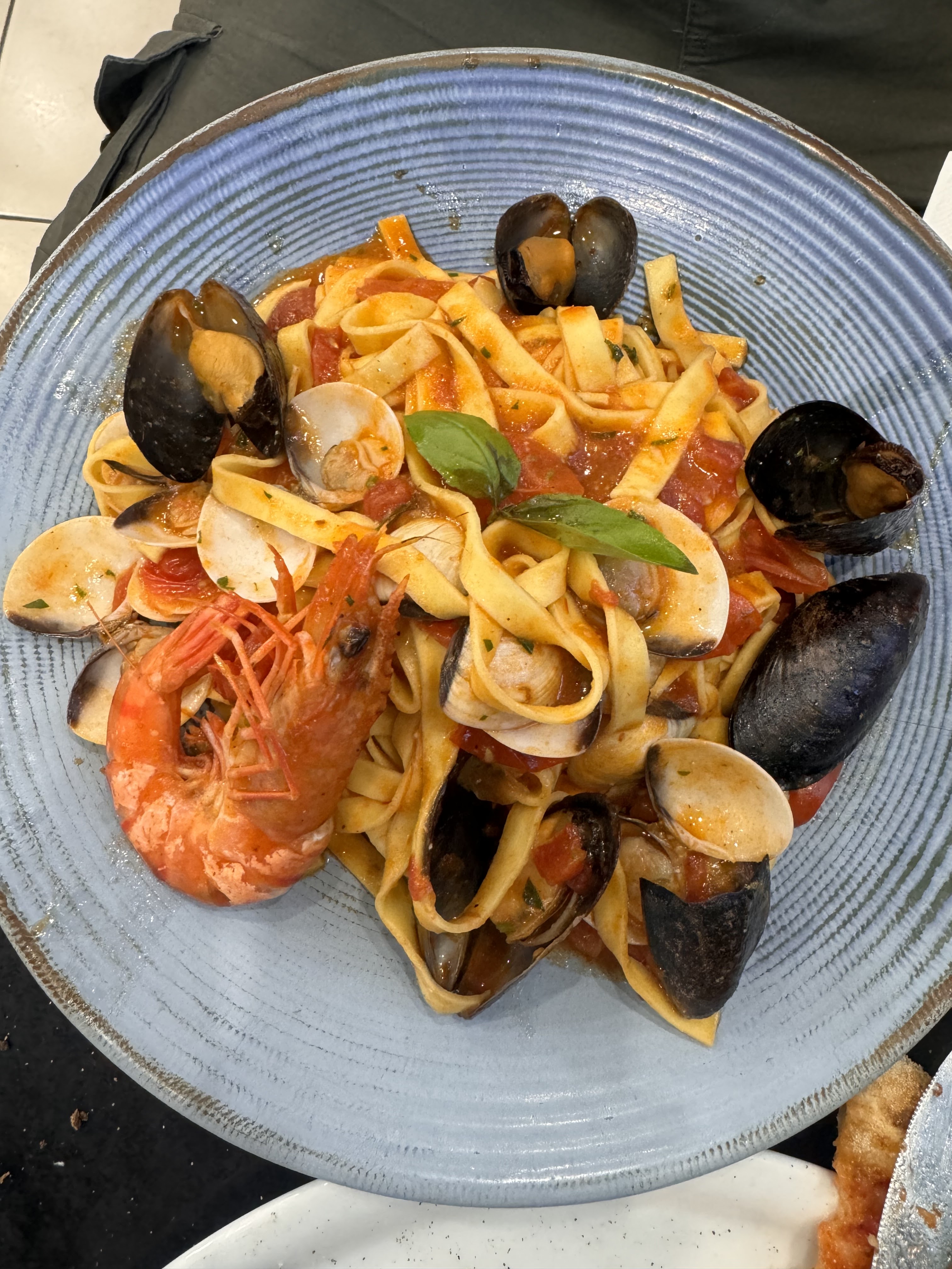 Délicieux. J ai goûté la pizza regina, moelleuse, pâte fine, très bien garnie. Parfaite. J ai ensuite dégusté le tiramisu, très bon également et très copieux. Je recommande vivement ce restaurant. Hâte d y retourner pour savourer les pâtes. Pensez à réserver.