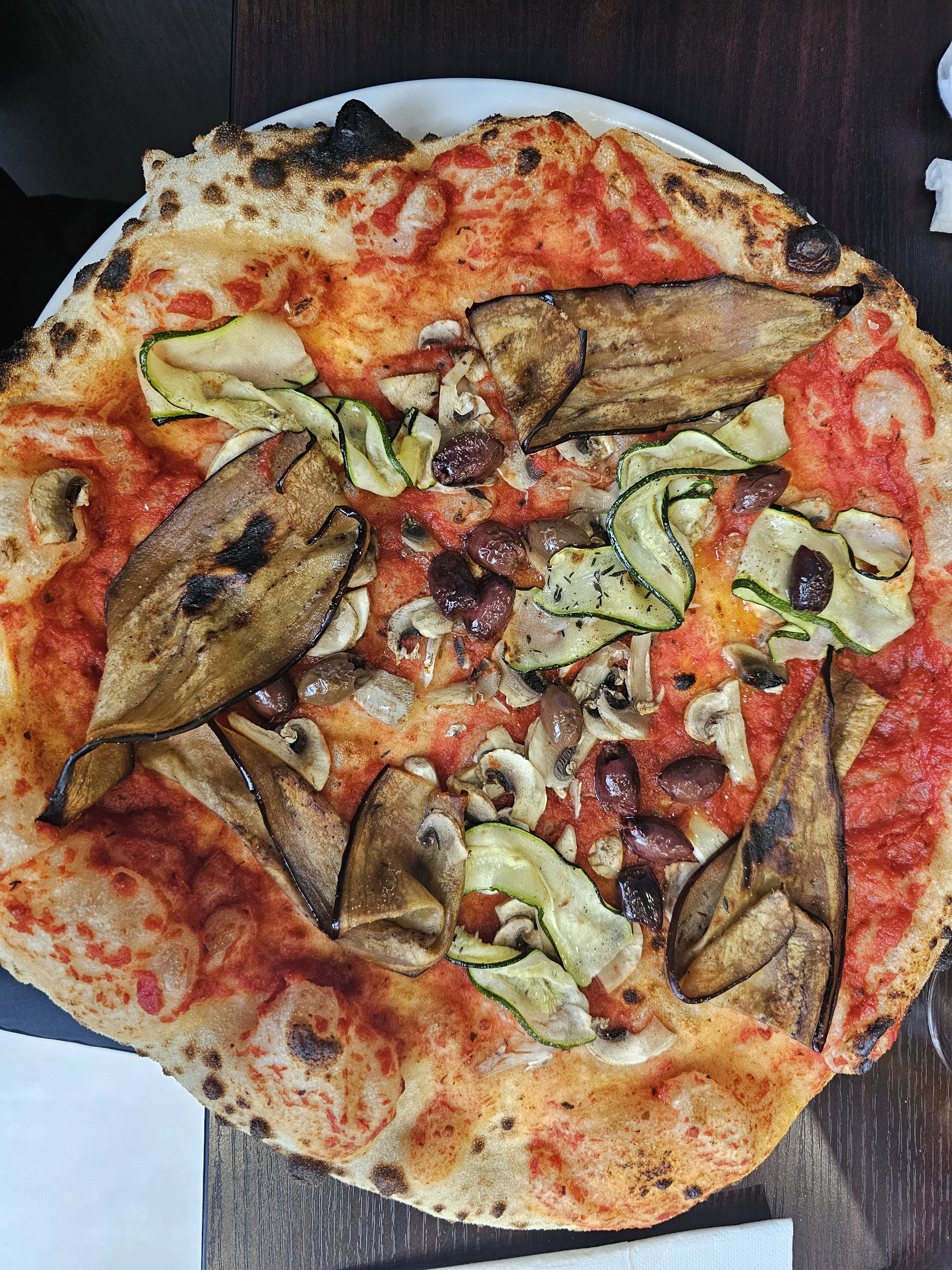 Nous avons pris 3 pizzas a emporter dont une végan et toutes les 3 délicieuses avec une très belle garniture sur une pâte fine et cuite à point.De plus le patron est italien ce qui est un atout majeur et très sympathique. Nous y retournerons avec plaisir et la prochaine fois nous déjeunerons ou dînerons sur place.