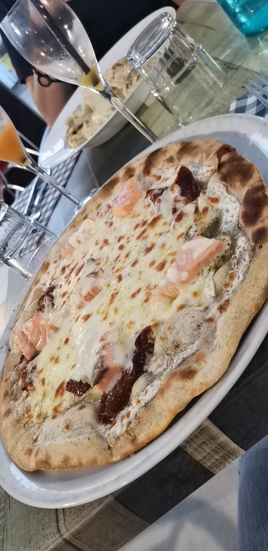 Pizza pâte très fine néanmoins sauce tomate trop sucré pour moi et le chèvre de saint berthevin c est transformé en un fromage industriel ....celle aux fruits de mer les crevettes de belles tailles ...mais pauvre dans la quantité des autres garnitures ....